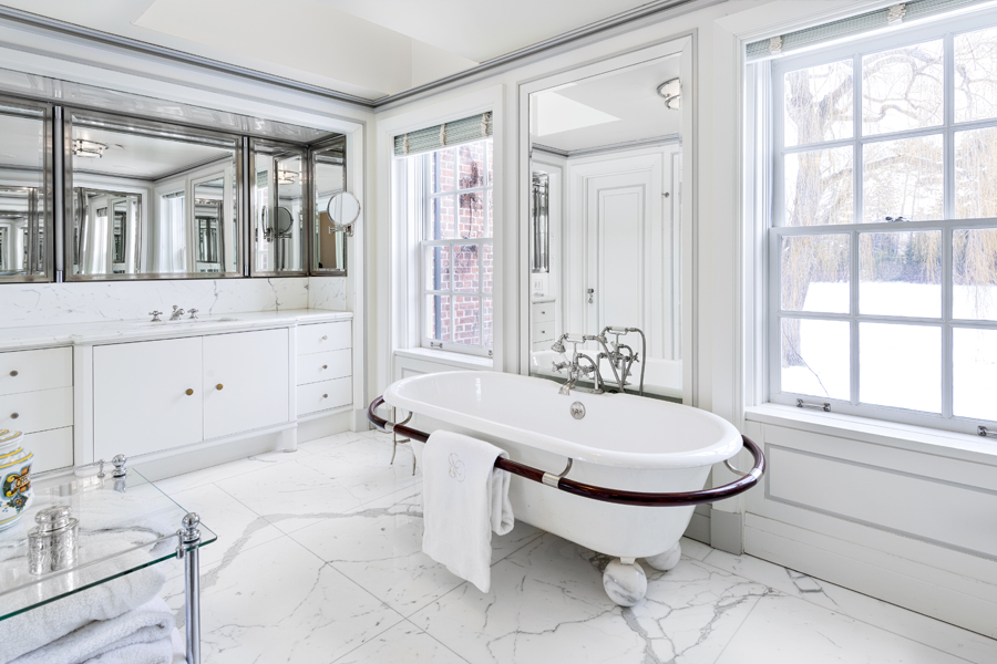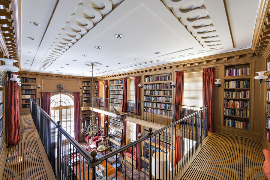 The house has an elegant formal dining room, dual sitting and dressing rooms, a two-story/two-room library, state-of-the-art chef’s kitchen, a media room, billiard room, wine cellar and multiple working fireplaces throughout. Including the guest apartment and coach house, the entire property includes a total of nine bedrooms, 11 full bathrooms and four half bathrooms. There will be an unpublished reserve.