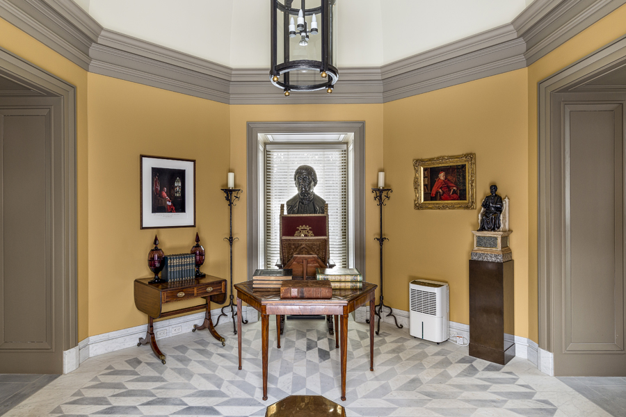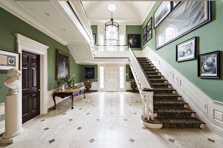 Crafted and constructed by famous international Architect Thierry W. Despont — who has been commissioned by other notable clients including Bill Gates, Gianni Agnelli and Stavros Niarchos — 26 Park Lane Circle is a magnificent Georgian residence that has everything from an indoor pool and spa to a chapel consecrated by two Cardinals. Taking the term ‘grand entrance’ to a whole new level, the residence is located down a winding, romantic driveway set back from the road, nestled amongst the trees without another building in site. Upon arrival, guests are greeted within the three-story foyer, complete with a grand staircase, impeccably detailed molding and an ornate chandelier. Offering endless options for entertaining, the estate is comprised of uniquely configured reception and living spaces where Black and his family have hosted Richard Nixon, Margaret Thatcher, Henry Kissinger, The Duke of Edinburgh, Sir Elton John, and many other prominent figures.