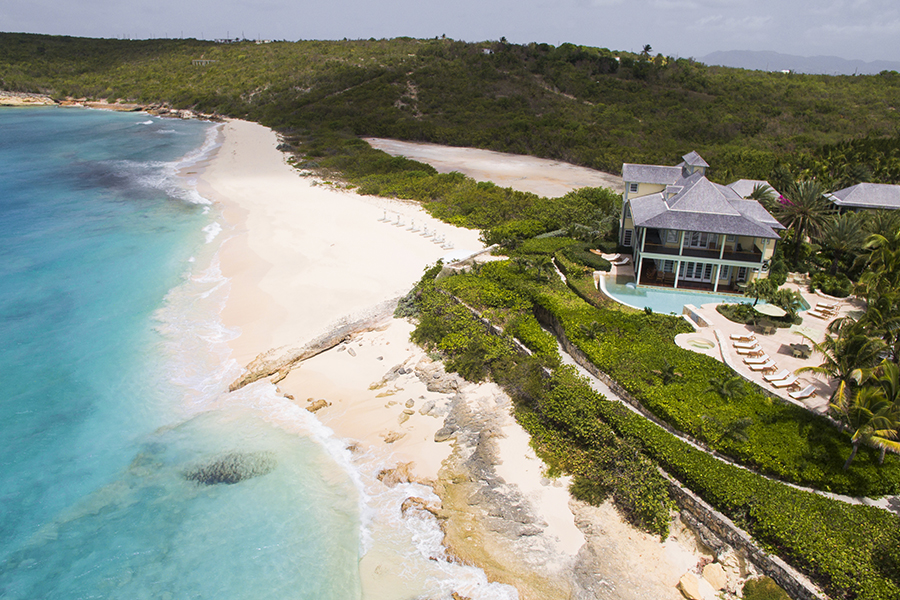 Elegant island escape meets impeccable design at Santosha Estate, ideally situated on Anguilla’s secluded Long Bay Beach upon three acres of rare beachfront property. One of the largest and most private estates on the island, Santosha Estate offers spacious rooms and amenities, wraparound porches, an infinity pool with ocean views, on-site staff, gym and outdoor Jacuzzi. Built to entertain with large open spaces, the 37,000-square-foot-plus estate offers seven en-suite bedrooms spaciously divided between the main home, and two guest cottages. Previously offered for $15 million, the property will sell without reserve in cooperation with Steve and Debbie Haines of Trophy Properties Ltd.