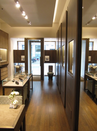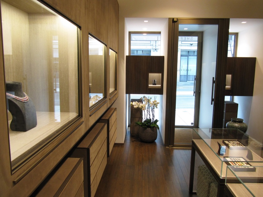 Founded in 1972, Sheffield moved to its present location in 1982 and was recently taken over by a family of jewellers in Geneva, who commissioned Zordan and the "AT&D" (Architectural Tools and Design) studio of Turin to completely renovate the store. The objective was the modernisation of the store and the repositioning of the sales outlet's image in an exclusive area in order to meet the sophisticated tastes of a wider clientele seeking more modern jewels and unique collector's items.