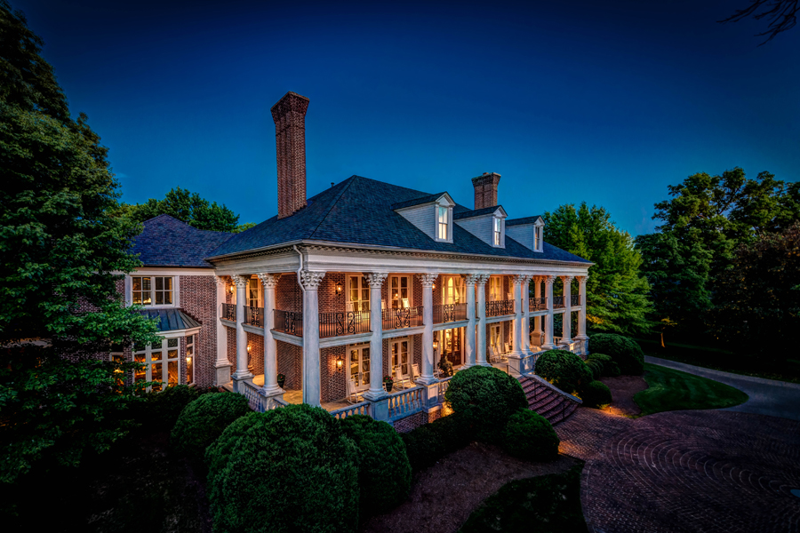 Located on the most prestigious street in Belle Meade, the five-acre, gated Southern estate features wraparound porches and covered verandas, a three-level elliptical central staircase, gourmet kitchen, tennis court, heated pool, spa and more. The Antebellum Greek revival estate is comprised of 22,000 square feet and is detailed with chevron patterned hardwood floors, maple columns, French doors and multiple fireplaces.