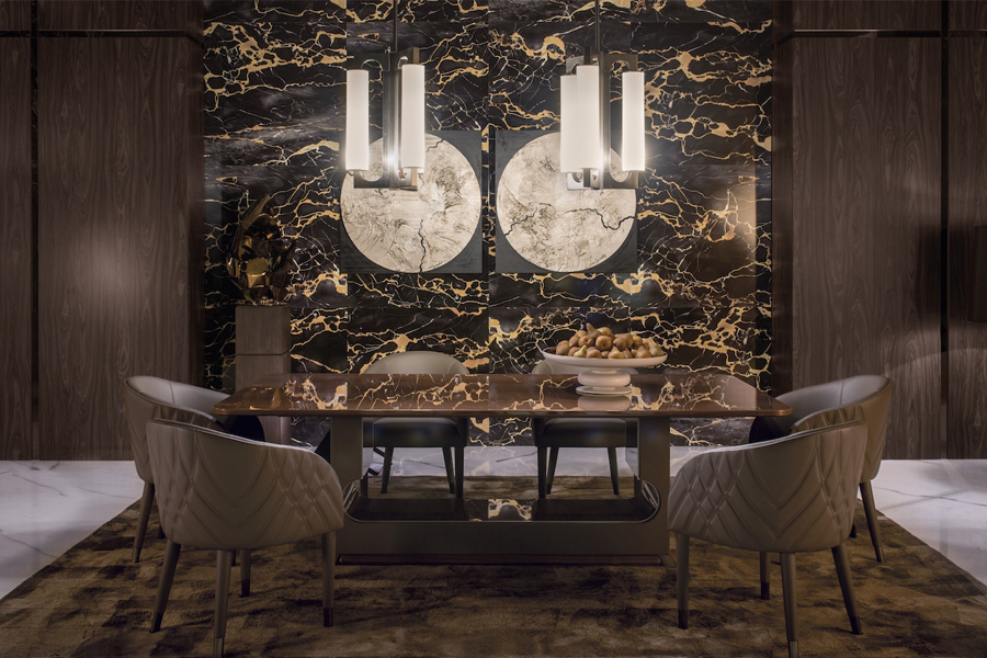 A collection that breaks the patterns, capable at the same time to preserve Smania’s essence and its distinctive character, other than bringing new decorations, unusual colors and new ways to combine the materials that since always form part of this Venetian company heritage: leather, steel, precious and hand crafted wood veneers.