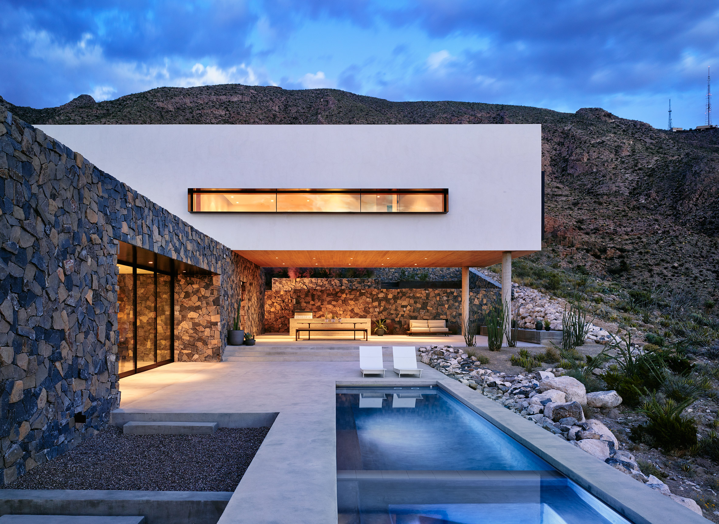 The Franklin Mountain House is located on the fringe of El Paso, Texas. Perched 800 feet (244 metres) above the city, the desert dwelling is situated in the foothills of a mountain range and is afforded views of the urban landscape below.