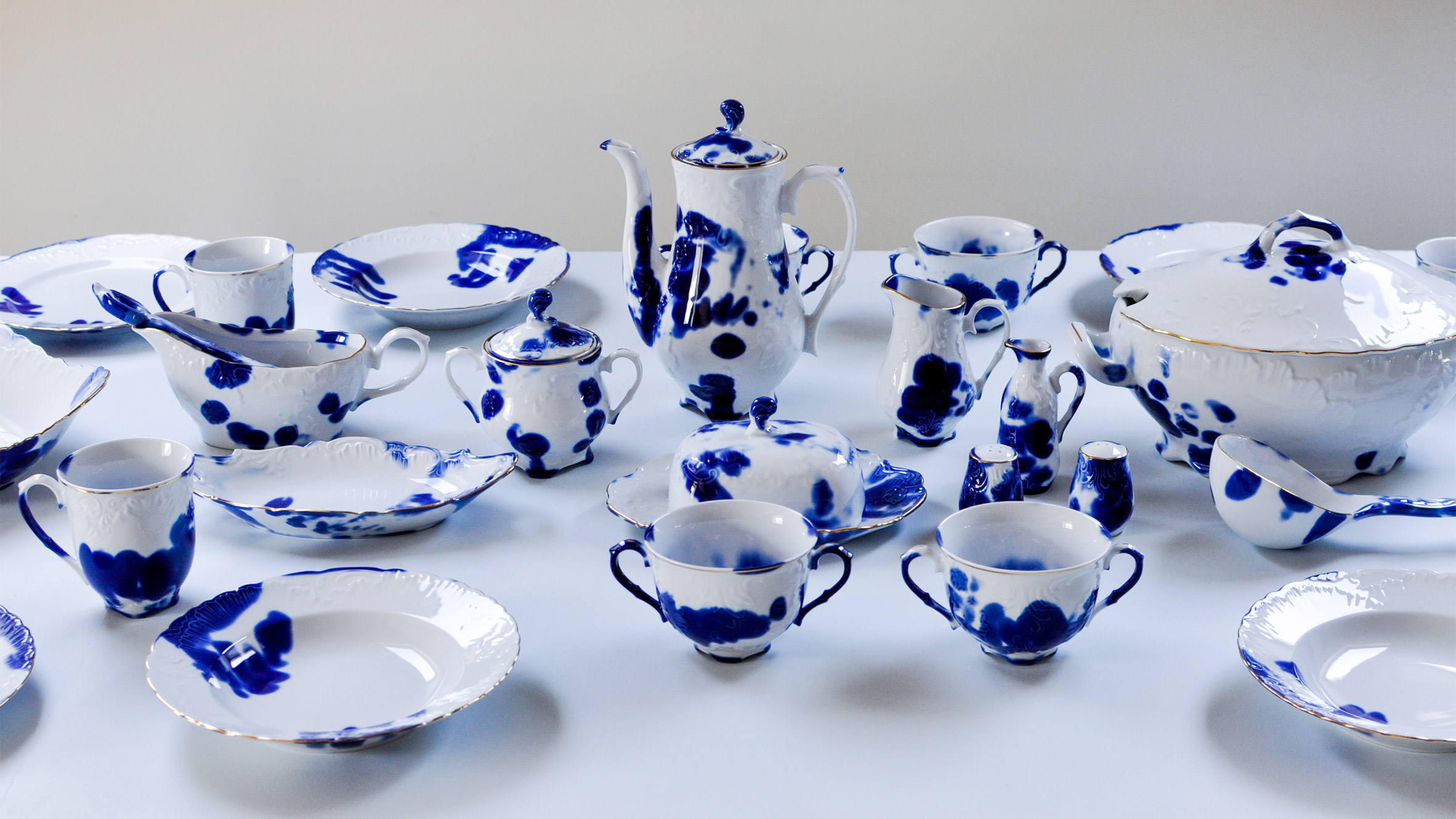 The marks remained almost invisible until firing, when irregular patterns appeared on the porcelain body as the cobalt turned dark blue. "The project emphasises how valuable a man is in a factory. It shows us that the porcelain that we use is a result of the human work and that this human touch is part of the whole manufacturing process," Szwed said.