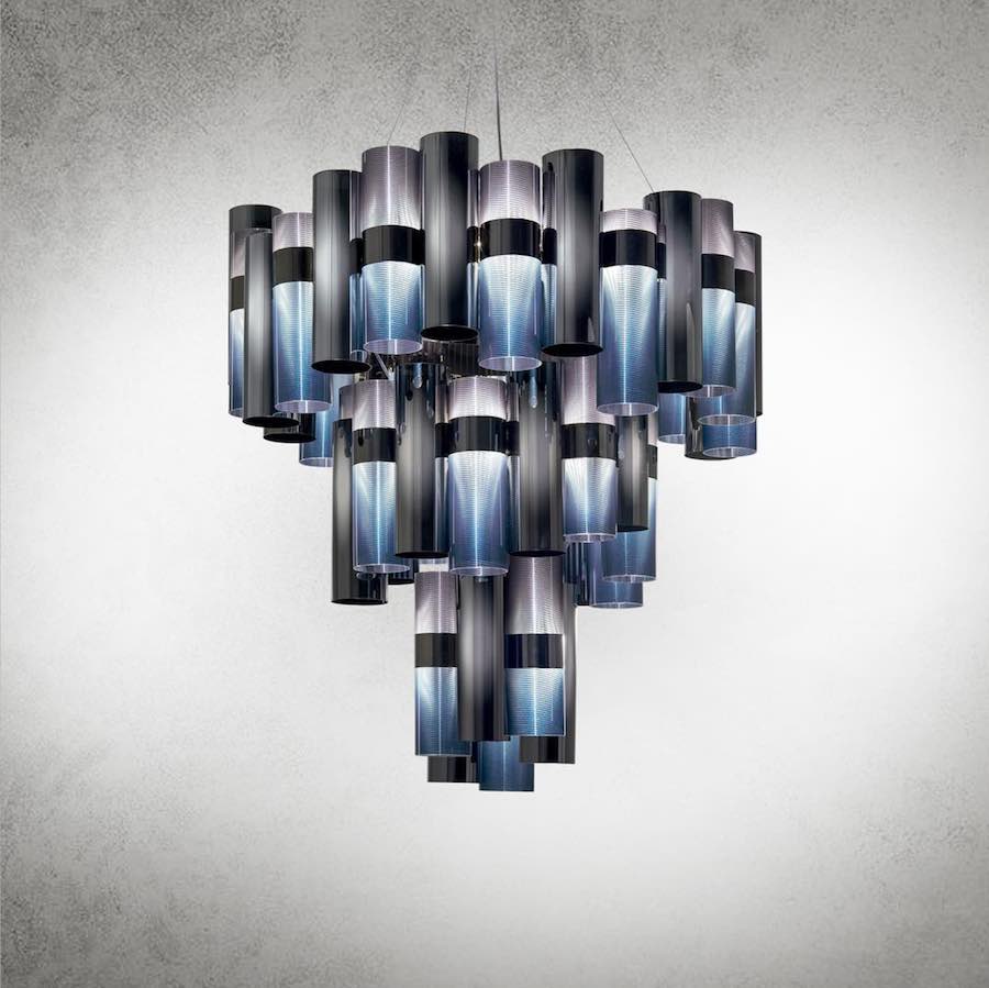 “When I was a kid I used to dress up with my grandma stage-clothes. She was an opera singer and I used to wear her bubble skirts and 50s style shoes to go to college”. La Lollo chandelier, Lorenza Bozzoli’s brand-new design for Slamp, evokes Dolce Vita atmospheres with a contemporary twist. Techno-polymers replace traditional crystals.