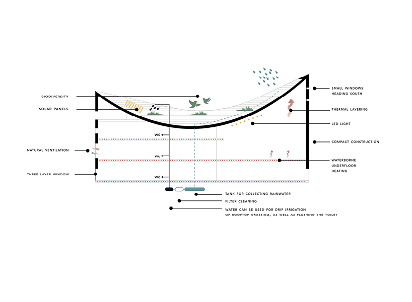 NOMOstudio’s Synhavnen church acquires a changing perspective while looking at it from different angles, just like a shape shifting geometric sculpture. In addition to its external multidimensionality, the structure should also offer spaces ‘for social and cultural activities, open 24/7’, as stated by co-founder Karl Johan Nyqvist. Indeed, the roof which would be accessible from the plaza in front of the church can be used for many church-related events — such as outdoor weddings, meditation classes, concerts etc. On the other hand, it can function as a vertical park for people to climb over and take part of the expansive sea view.