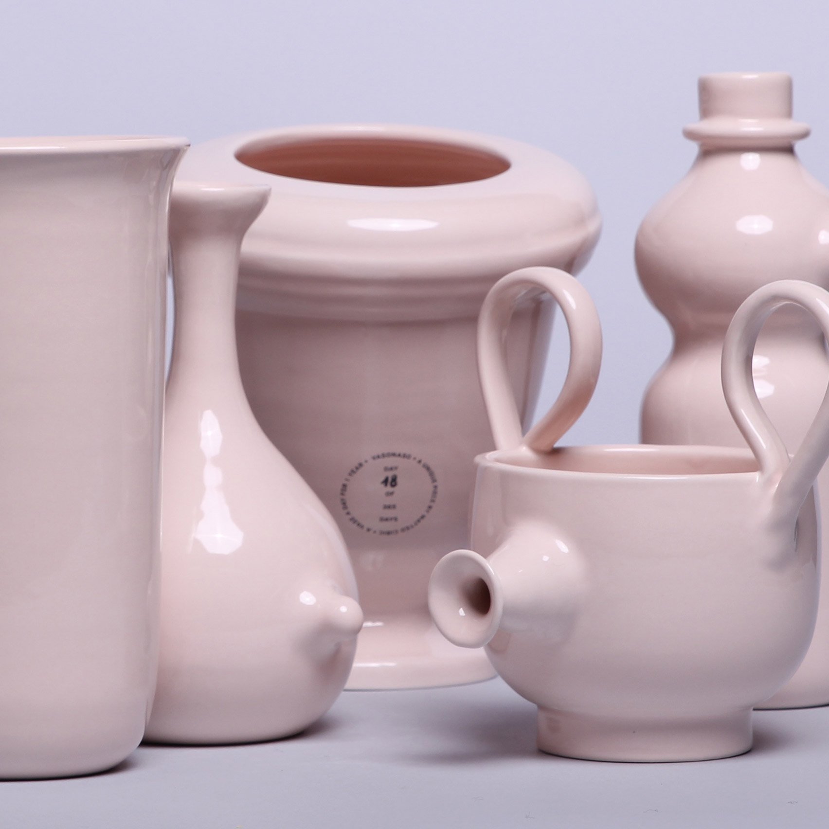 Cibic used the colour for two separate projects he showed in Milan: a series of 365 anthropomorphic vases and a decorative cabinet he created for Indian furniture brand Scarlet Splendour. Slovenian designer Nika Zupanc also chose the shade for two designs she showed in Milan: a range of cabinets, also for Scarlet Splendour, and an angular daybed for British brand Sé. Zupanc said she has worked with various shades of pink over the last decade, in an "almost rebellion manner", as the colour was so unpopular until recently.