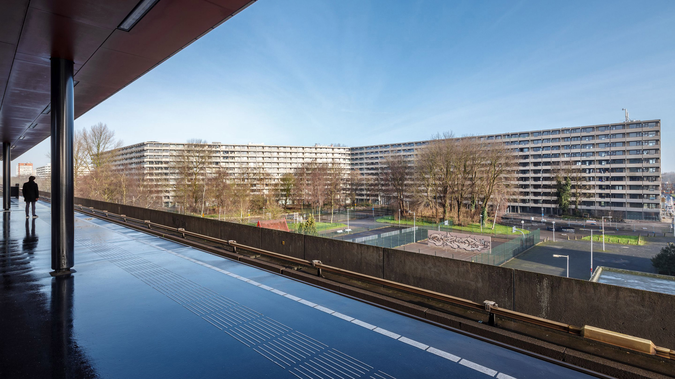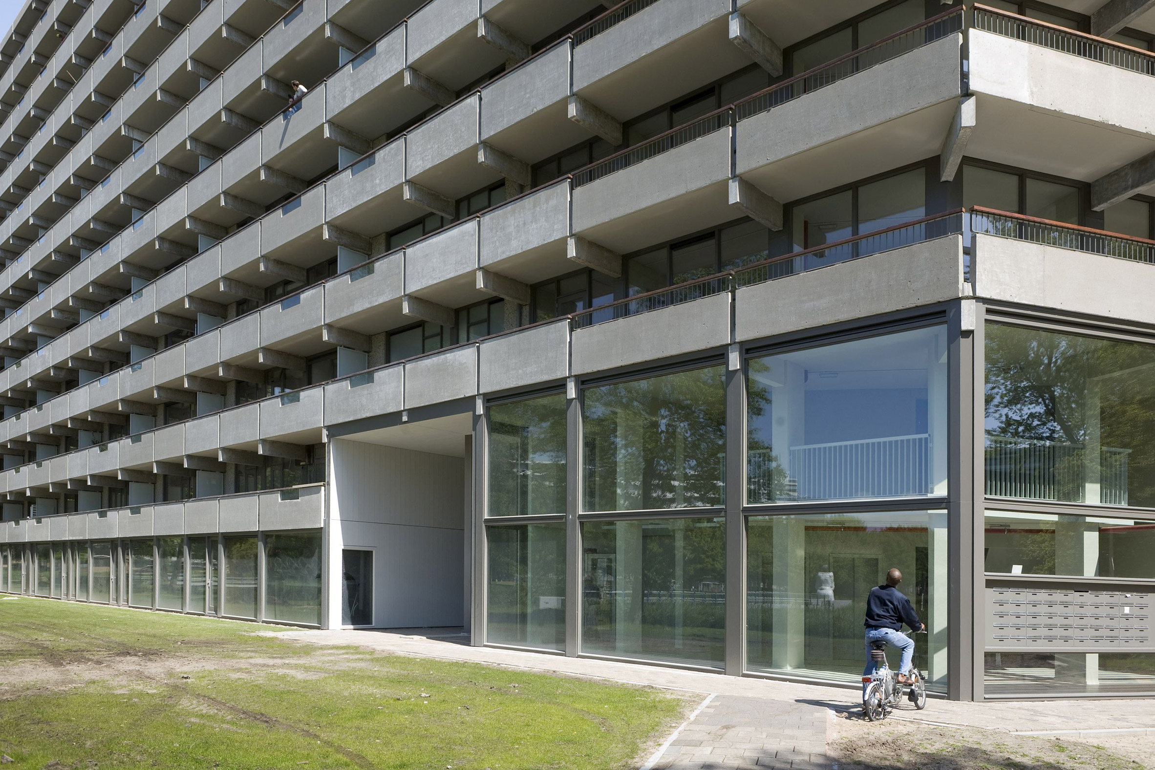 The Kleiburg apartment building – a colossal, 400-metre-long block containing 500 apartments over 11 storeys – is one of several blocks laid out in a hexagonal plan to form an estate to the southeast of Amsterdam. DeFlat was selected as the winner of the Mies van der Rohe Award 2017 from a shortlist of five projects, including a British housing scheme, museums in Denmark and Poland, and a memorial in France.