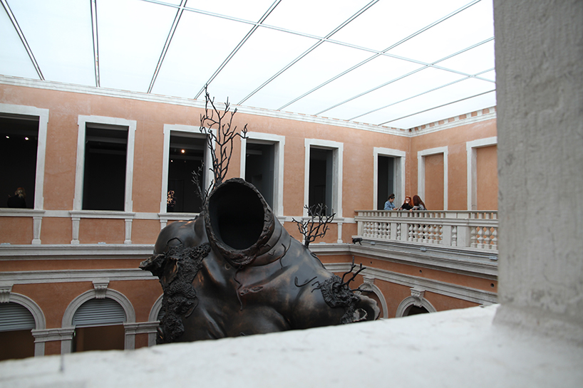 img.0 Installation view of "Demon with bowl" in the atrium of Palazzo Grassi. Image © designboom.