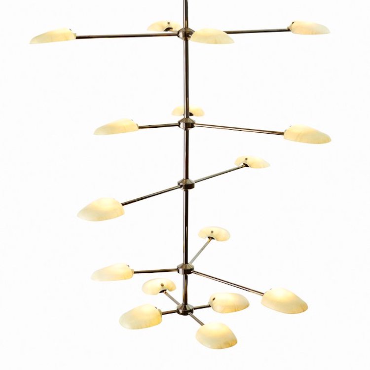 Inspired by organic forms, Rich Brilliant Willing teamed with Meyer Davis Studio to create an adaptable lighting design to fit in different spaces, particularly in hospitality. The Pilot chandelier features a rounded, shell-like shade available in a range of colors, lengths, and finishes. The compositions of these branches are a sculptural exercise; options range from a linear beam suited to the long dining table, or an elaborate starburst ideal for a grand foyer.