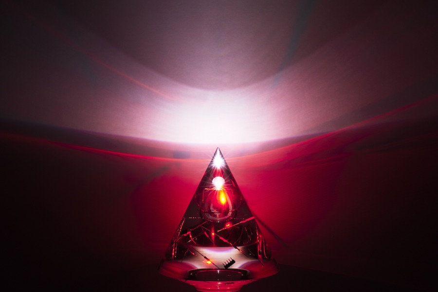 Japanese studio TAKT PROJECT created a collection of design accessories which aims to reframe of method of designing electrical appliances. The COMPOSITION series treats electronic components as the ingredients of a new material: a clear acrylic resin holds and protects electrical parts which seem to float without a circuit board but are actually connected by a special ultra-fine wire.