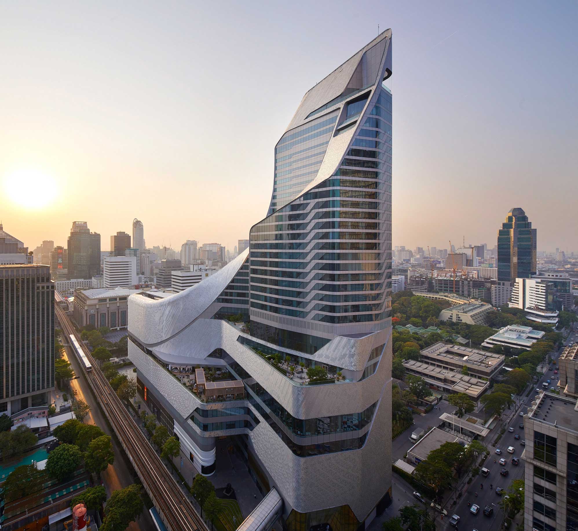 The first tower in Thailand to be completed by a British architect, Central Embassy is a magnificent 37 storey mixed use building, located on Bangkok’s busy Ploenchit Road, on the site of the former British Embassy gardens. The project was commissioned by Central Group, one of Thailand’s leading retailer and department store operators to house a shopping centre and with 27 storeys reserved for the Park Hyatt hotel.