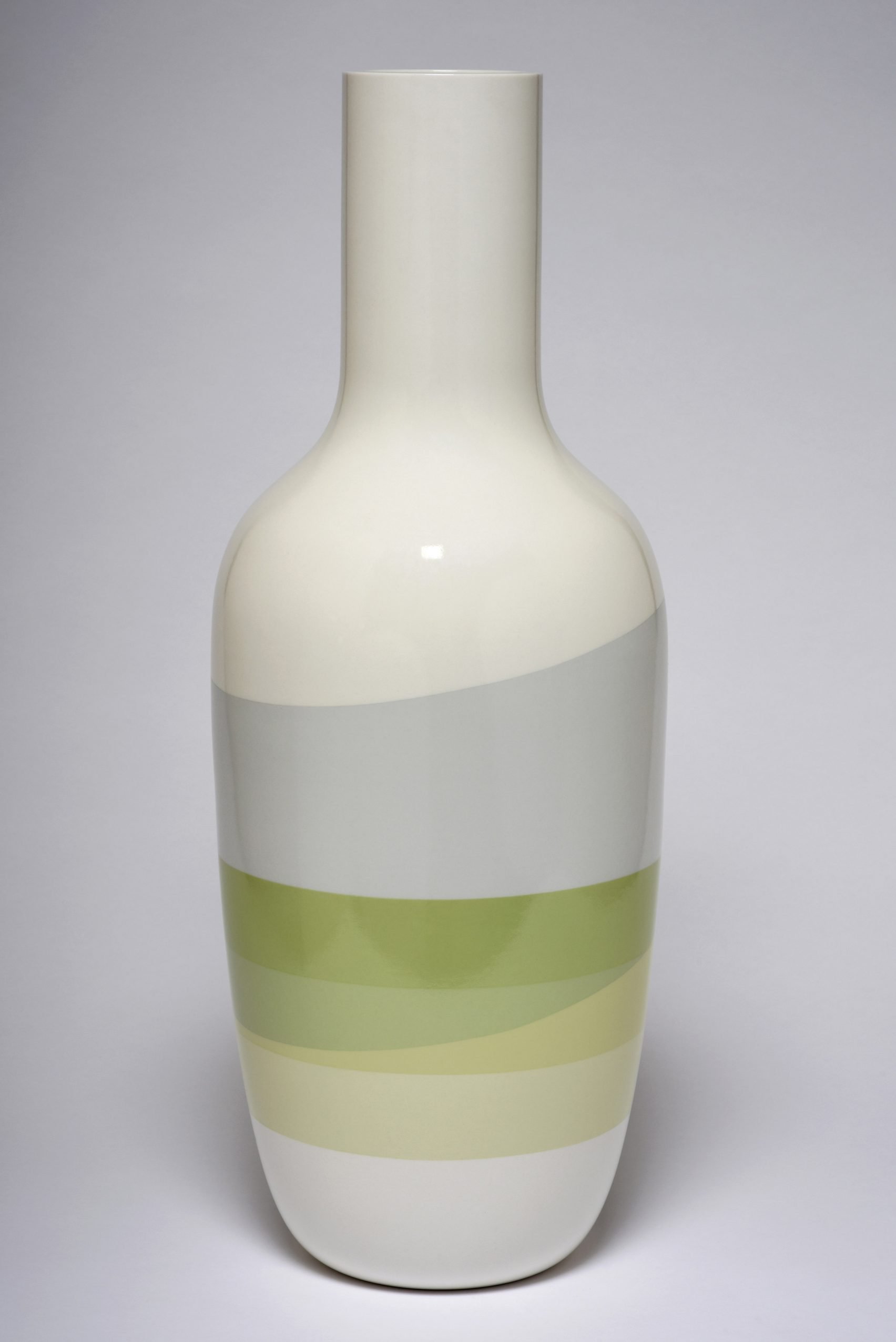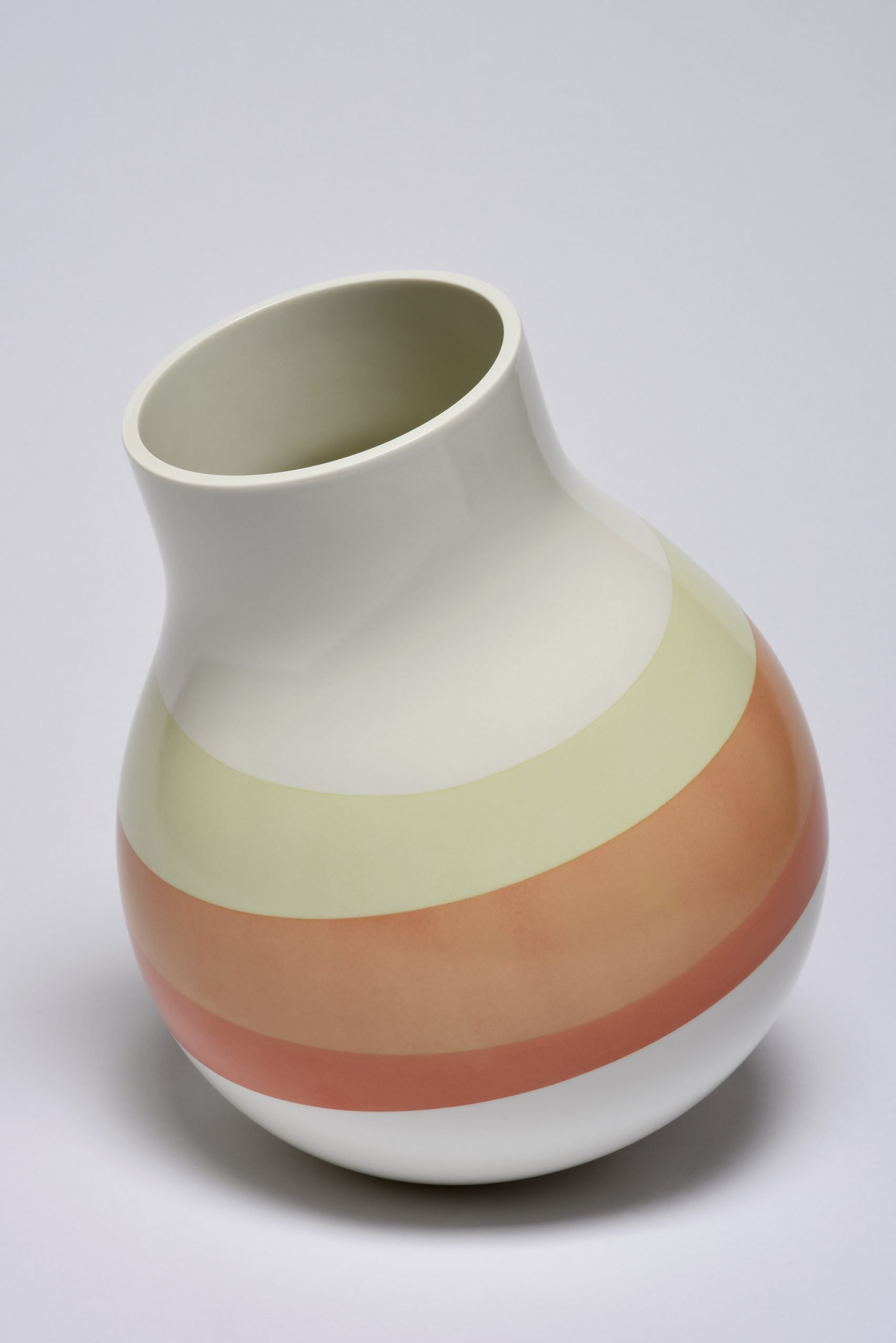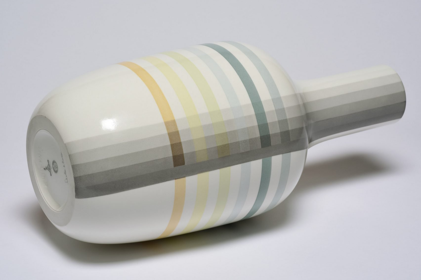 Each piece is simply decorated with soft pastel-toned hues that wrap around the vessels, criss-crossing at different points. "For their project, the designer duo reinterpreted various forms of vases from the manufacturer's repertoire, and became fascinated by the palettes of enamels on offer," said Sèvres.