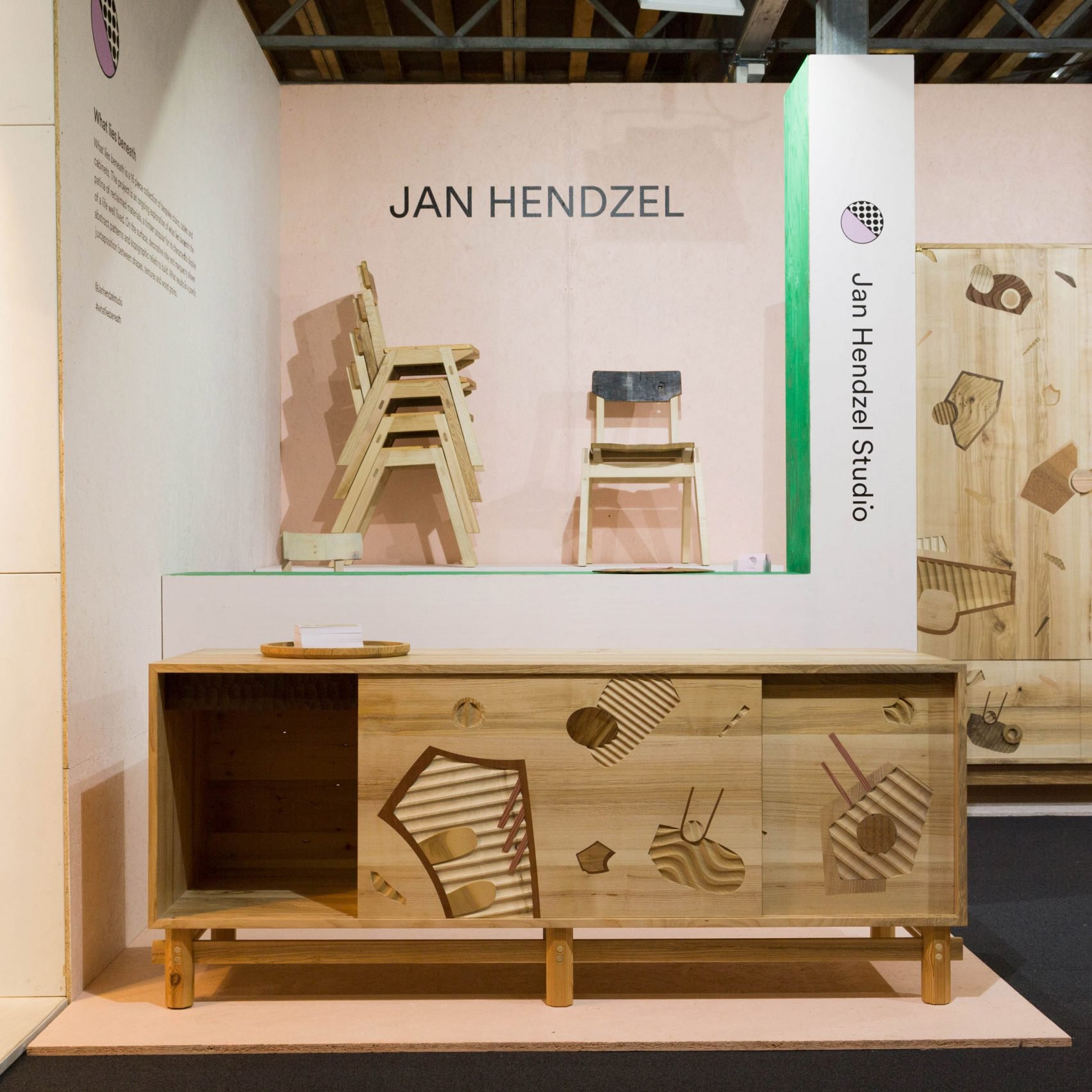 Hendzel's latest collection explores reclaimed timber, which is designed to show the different grains of woods in unusual patterns.