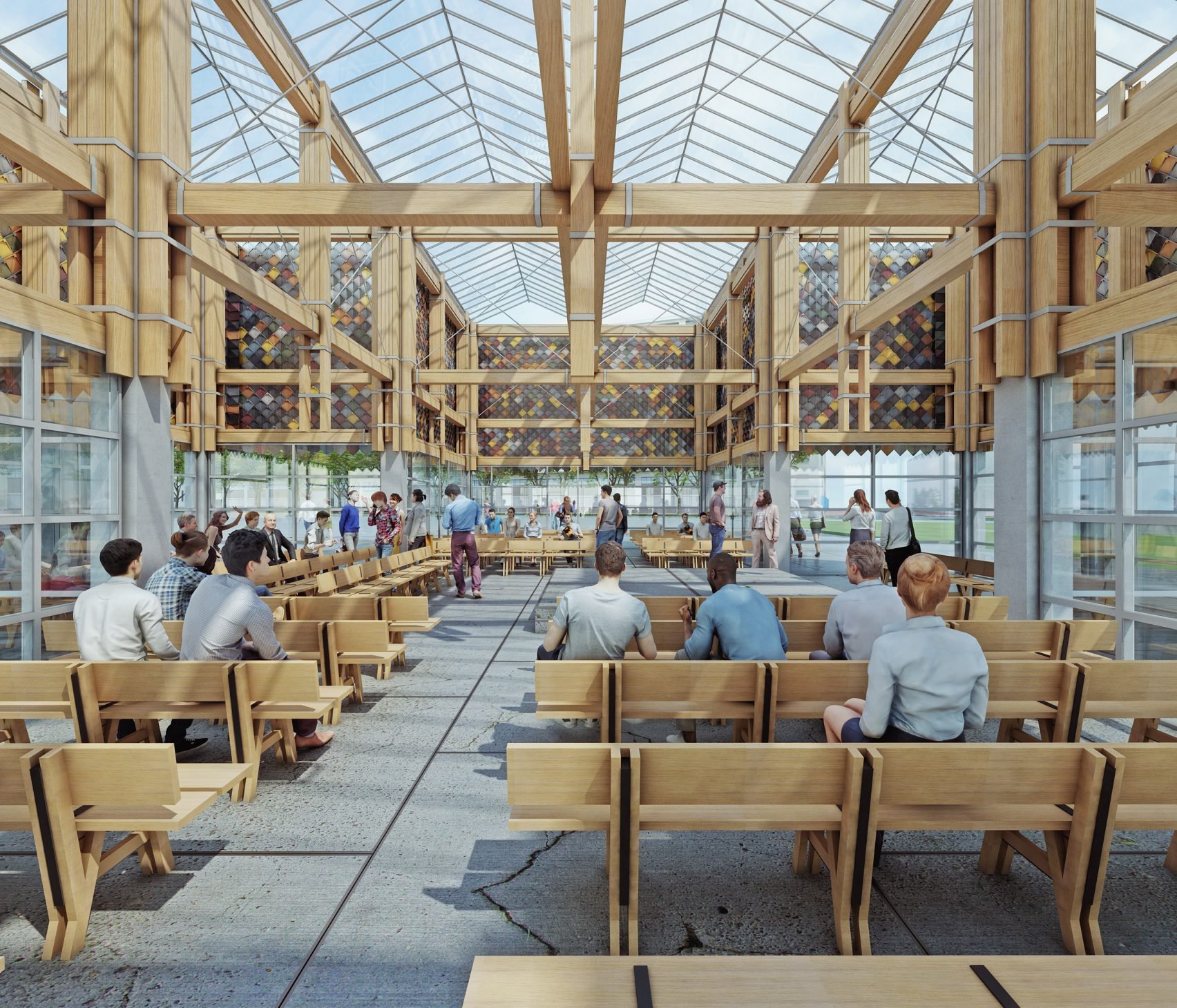 Called The People's Pavilion, the temporary structure will be built in Ketelhuisplein. It will form the main venue for the inaugural World Design Event at this year's Dutch Design Week, which takes place in Eindhoven from 21 to 29 October 2017. Measuring 250 square metres, the pavilion includes a cross-shaped auditorium that can host 200 people seated, or 600 people standing. It will be used for a range of activities, including plays, music concerts and workshops.