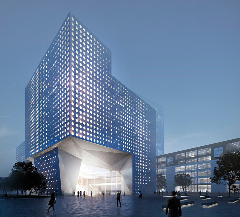 img.3 The entry by PFP Planungs features a façade punctured with spherical openings. Image courtesy of PFP Planungs.
