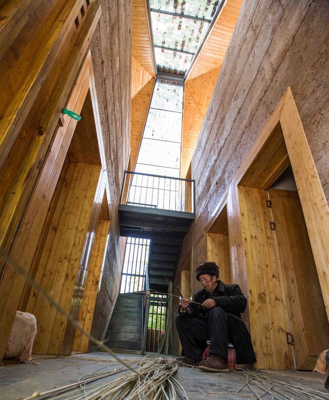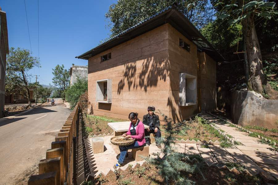 A prototype house was built for an aged couple to validate the technology and building performance of the innovative rammed-earth building system. The design provides a comfortable environment by integrating living and semi-outdoor spaces with double-glazed windows and an insulated roof. The building’s seismic performance was improved by adjusting the components of the wall with clay, sand, grass and other available materials. Steel bars and concrete belts are hidden in the walls to improve structural integrity and to avoid vertical cracking.