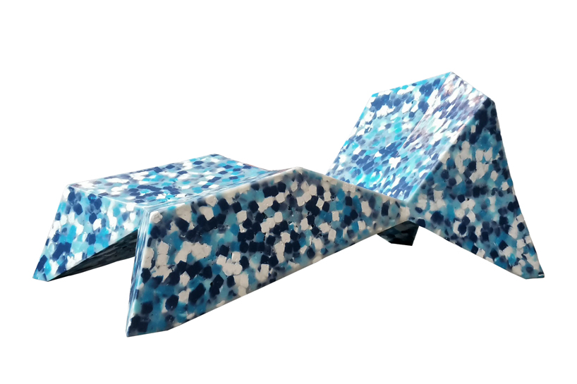 Ecopixel claims that this new method for recycling plastics is composed of 100% low-density polyethylene (LDPE) and melts at 120°C, which means it can be re-melted an infinite number of times without altering its properties. Its low melting temperature means its ecological impact is also greatly reduced during the production phase. The material can be melted into different shapes and colors, without homogenizing color pigments from its ‘raw’ waste material, resulting in a distinctive pixelated appearance.