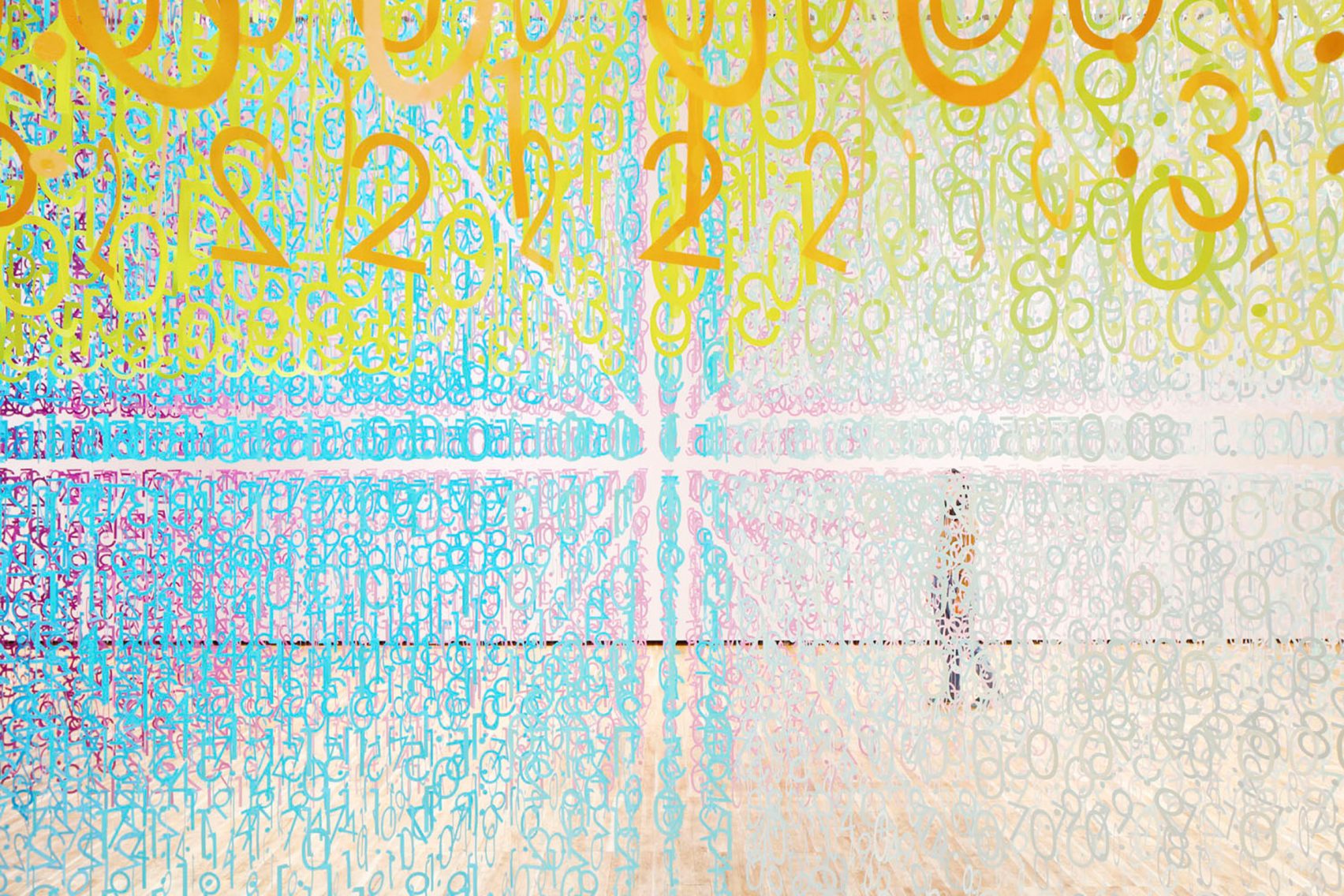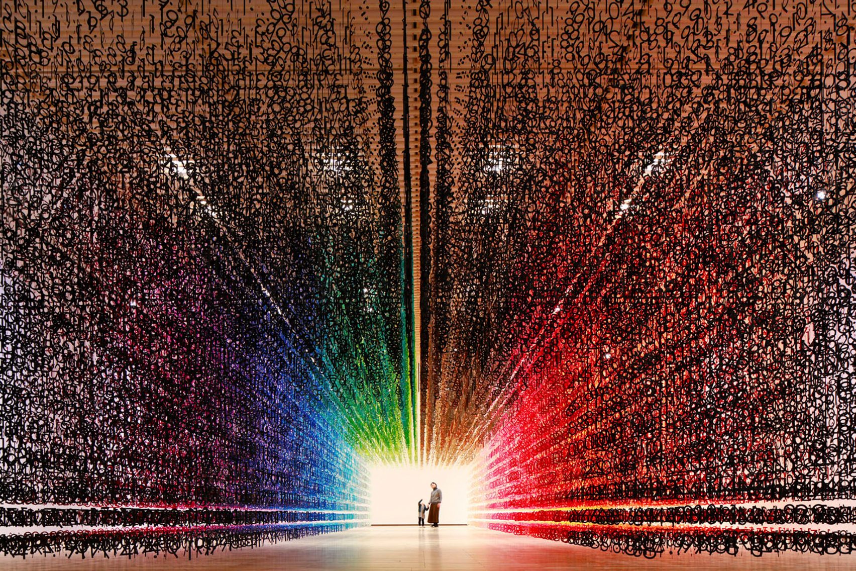 "The installation superimposes these two elements to visualise and make one feel the flow of time," explained the museum. To achieve this, she made 120,000 paper numerical figures from zero to nine, as well as a colon symbol, which she then aligned to form a three-dimensional grid composed of 100 layers.