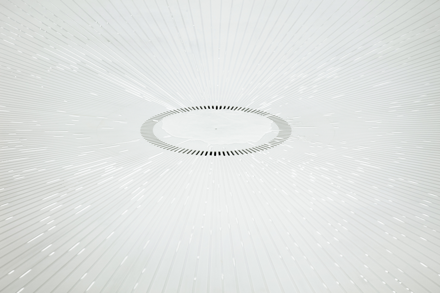 Inside the pavilion, visitors will encounter a vast 'water room' - a multi-sensory hydrophobic water installation that emits 25,000 singular water droplets every minute. Visitors can interact with the haptic sensors and create rhythms in these droplets as they collide, join and split across the water. These objects accumulate and amass into a ‘lake’ which drains and reappears in the space, shifting in and out of the viewer’s visual spectrum.