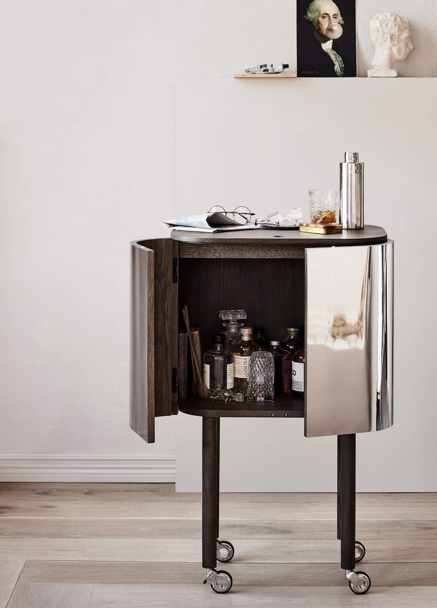 With a name like LOUD, you’d expect this gleaming cabinet designed by Swedish-French duo Färg & Blanche to scream for attention, but it barely even whispers. LOUD is an elegant bystander waiting to be noticed at cocktail time. The doors and side surfaces are enhanced by a seamless layer of polished laminate that creates a dazzling mirror effect.