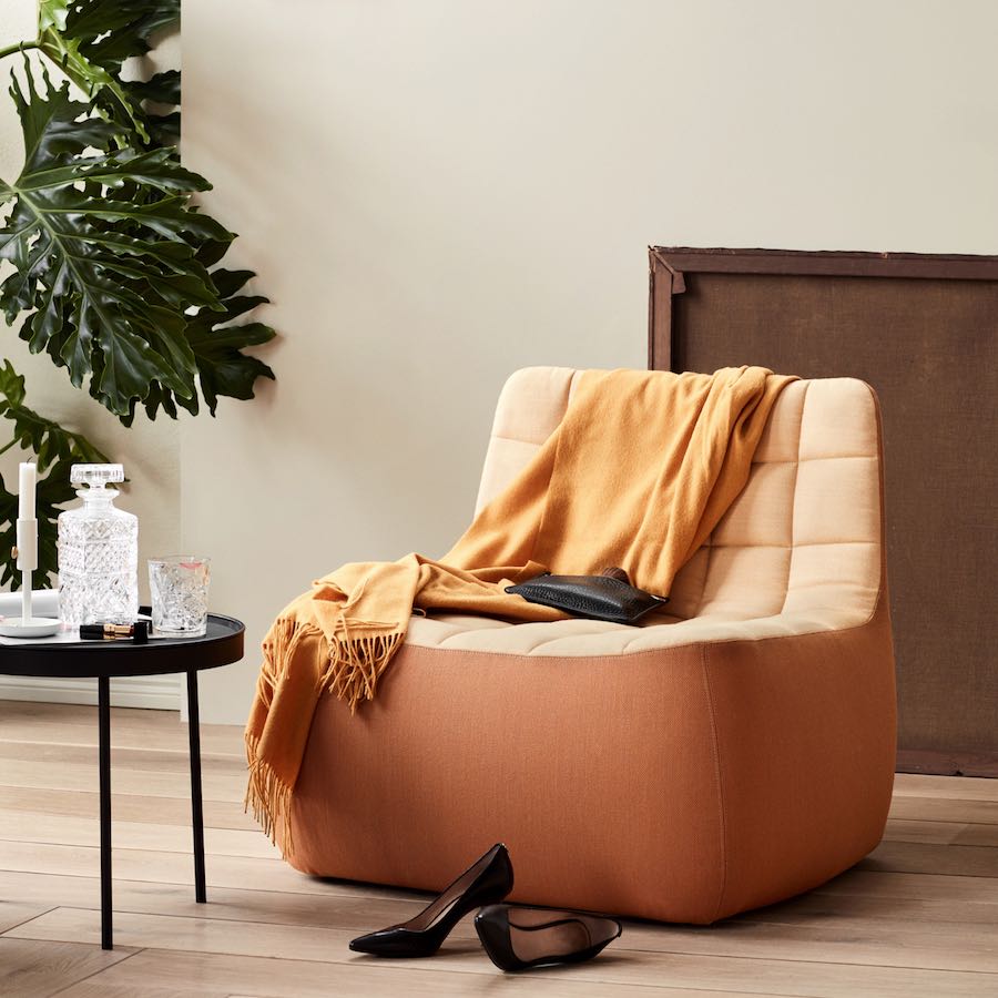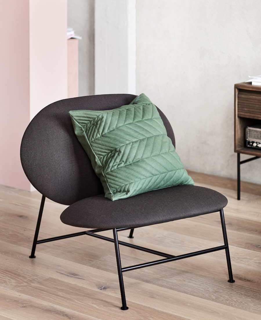 Inspired by traditional Ottoman stools, YAM lounge chair, an ottoman and a pouf by Swedish designer Mattias Stenberg is made with soft contours that enhance comfort and add support to the overall structure. The seats are bordered by a single, unbroken seam that forms a soft edge around the sides.