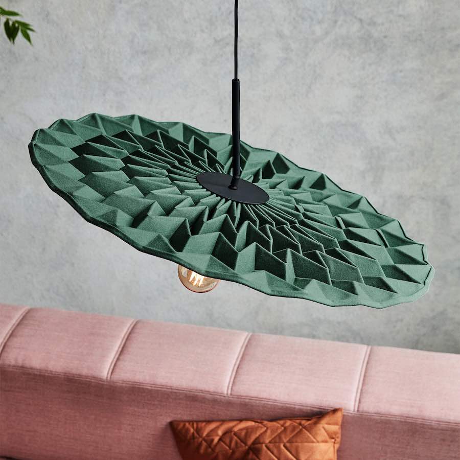 The FOLD pendant light by Scottish designer Kyla McCallum debuts following several years of research and experimentation at her Foldability studio in London. The designer developed a shade structured by repeating folds that brings Japanese origami to mind, making it a unique hybrid of hand-craftsmanship and fibre innovation.