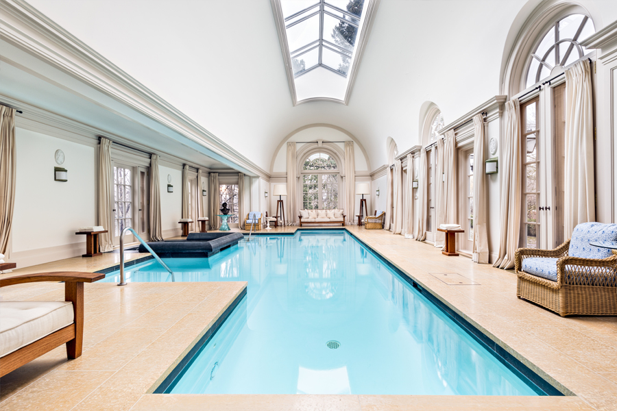 Crafted and constructed by famous international Architect Thierry W. Despont — who has been commissioned by other notable clients including Bill Gates, Gianni Agnelli and Stavros Niarchos — 26 Park Lane Circle is a magnificent Georgian residence that has everything from an indoor pool and spa to a chapel consecrated by two Cardinals. Taking the term ‘grand entrance’ to a whole new level, the residence is located down a winding, romantic driveway set back from the road, nestled amongst the trees without another building in site. Upon arrival, guests are greeted within the three-story foyer, complete with a grand staircase, impeccably detailed molding and an ornate chandelier. Offering endless options for entertaining, the estate is comprised of uniquely configured reception and living spaces where Black and his family have hosted Richard Nixon, Margaret Thatcher, Henry Kissinger, The Duke of Edinburgh, Sir Elton John, and many other prominent figures.