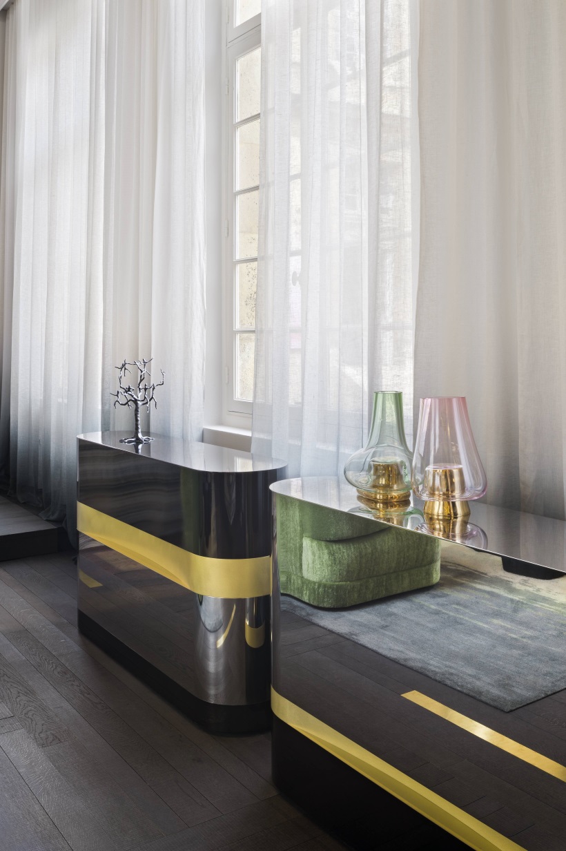 As in this project by Charles Zana, who for a large apartment in Paris has come up with a contemporary reinterpretation of a typology that has developed in different figures and styles since the 16th century, while keeping its measurements and figure essentially intact.