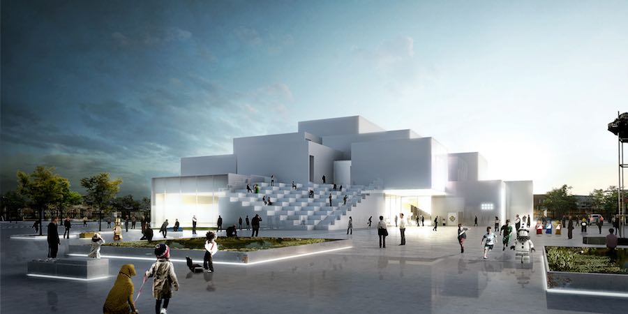Located in Dhahran, Saudi Arabia, the King Abdulaziz Center for World Culture by Snøhetta will contain diverse cultural facilities, including an auditorium, cinema, library, exhibition hall, museum and archive. The 100.000 sqm project is organized in bulbous and pebble-shaped volumes and was already near complexion at the end of 2016. Opening is scheduled in the second half of 2017.