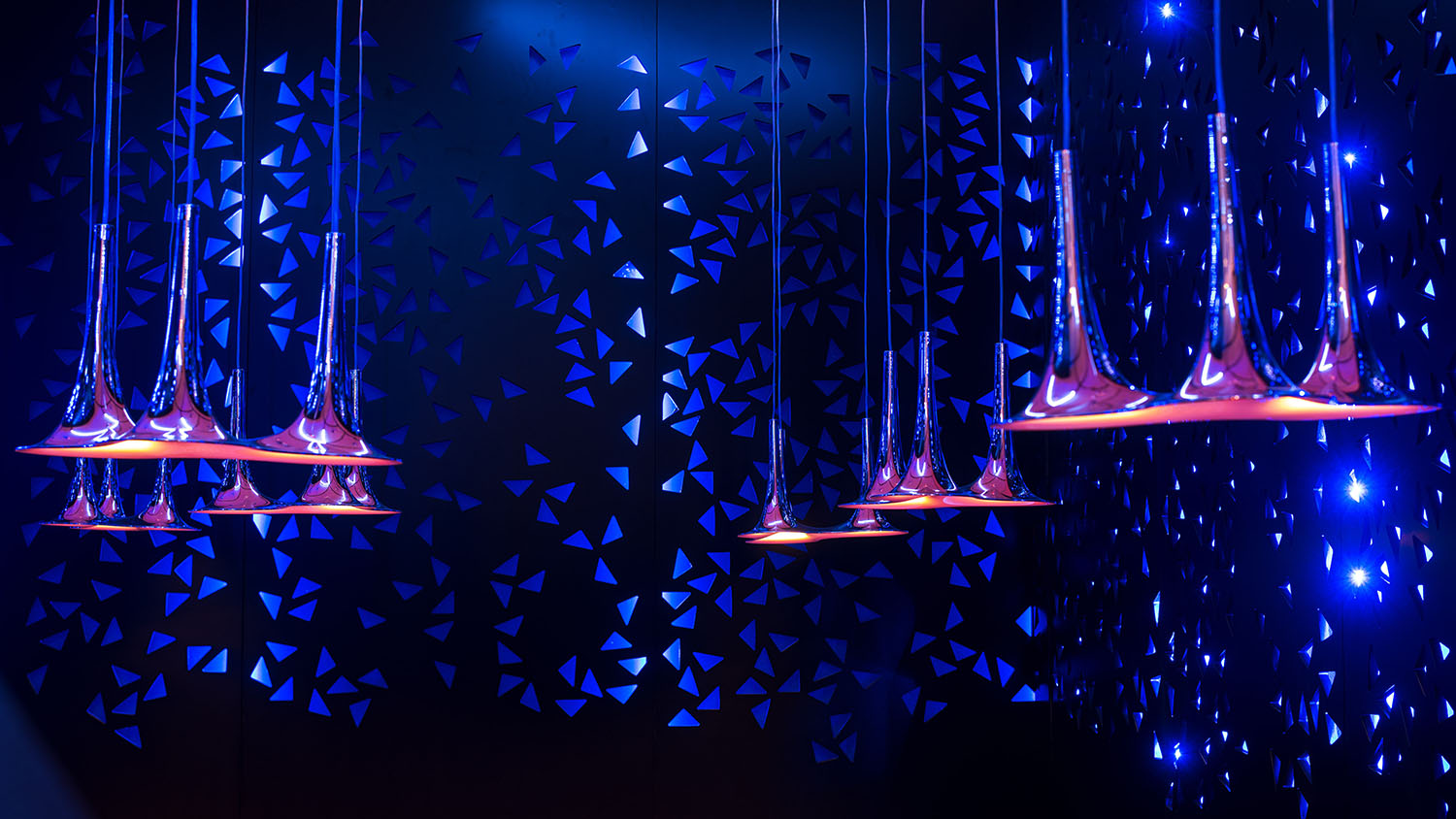 Karim Rashid sketched Nafir while thinking of light as a complement to music, imagining a fluid surface pulled upwards in several places: the three-dimensional handling of the surface, little by little, took shape and began its transformation into an object that resembles a trumpet.