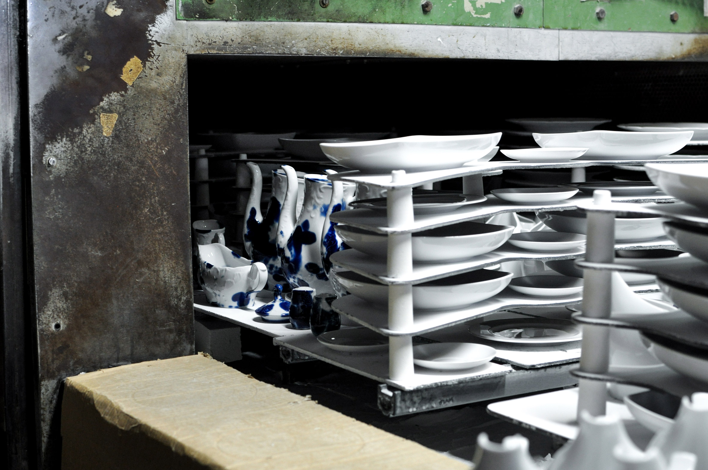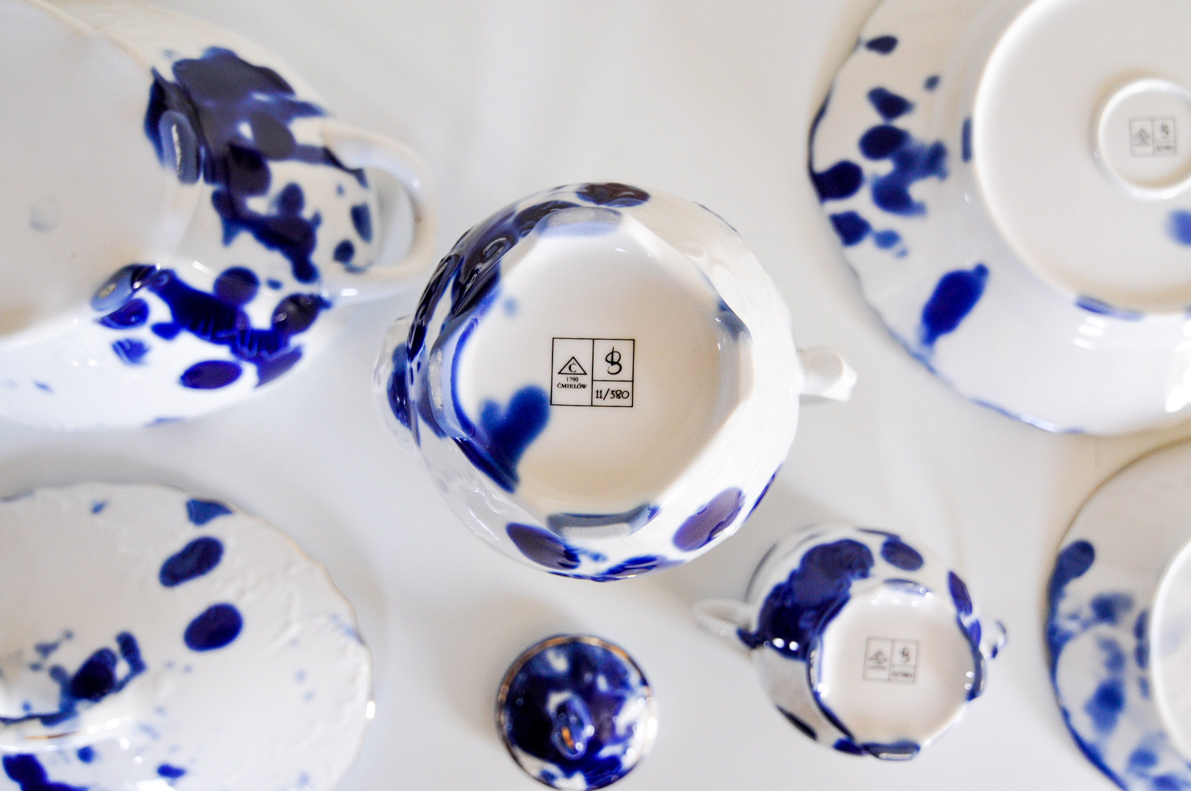 The marks remained almost invisible until firing, when irregular patterns appeared on the porcelain body as the cobalt turned dark blue. "The project emphasises how valuable a man is in a factory. It shows us that the porcelain that we use is a result of the human work and that this human touch is part of the whole manufacturing process," Szwed said.