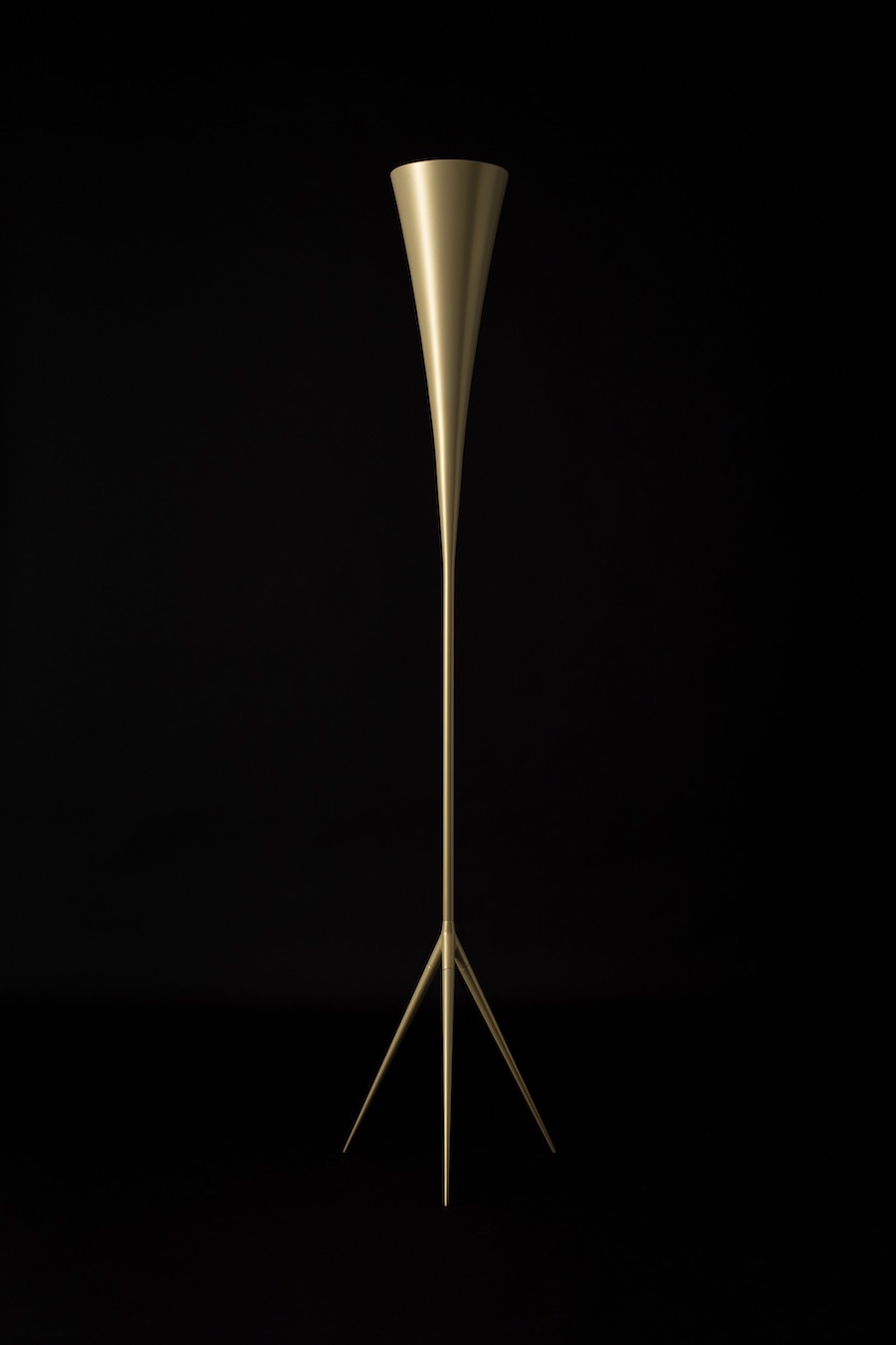 Emerging Italian brand TATO re-edits a Gio Ponti floor lamp design. The maestro used to design all sort of things, from Ferrari to pottery and skyscrapers. The new DE-LUX design narrates the story of a never realized project, now finally in production. A slink three legged stem blossoms like a brass calla lily. The design comes also with different bases and a lampshades.