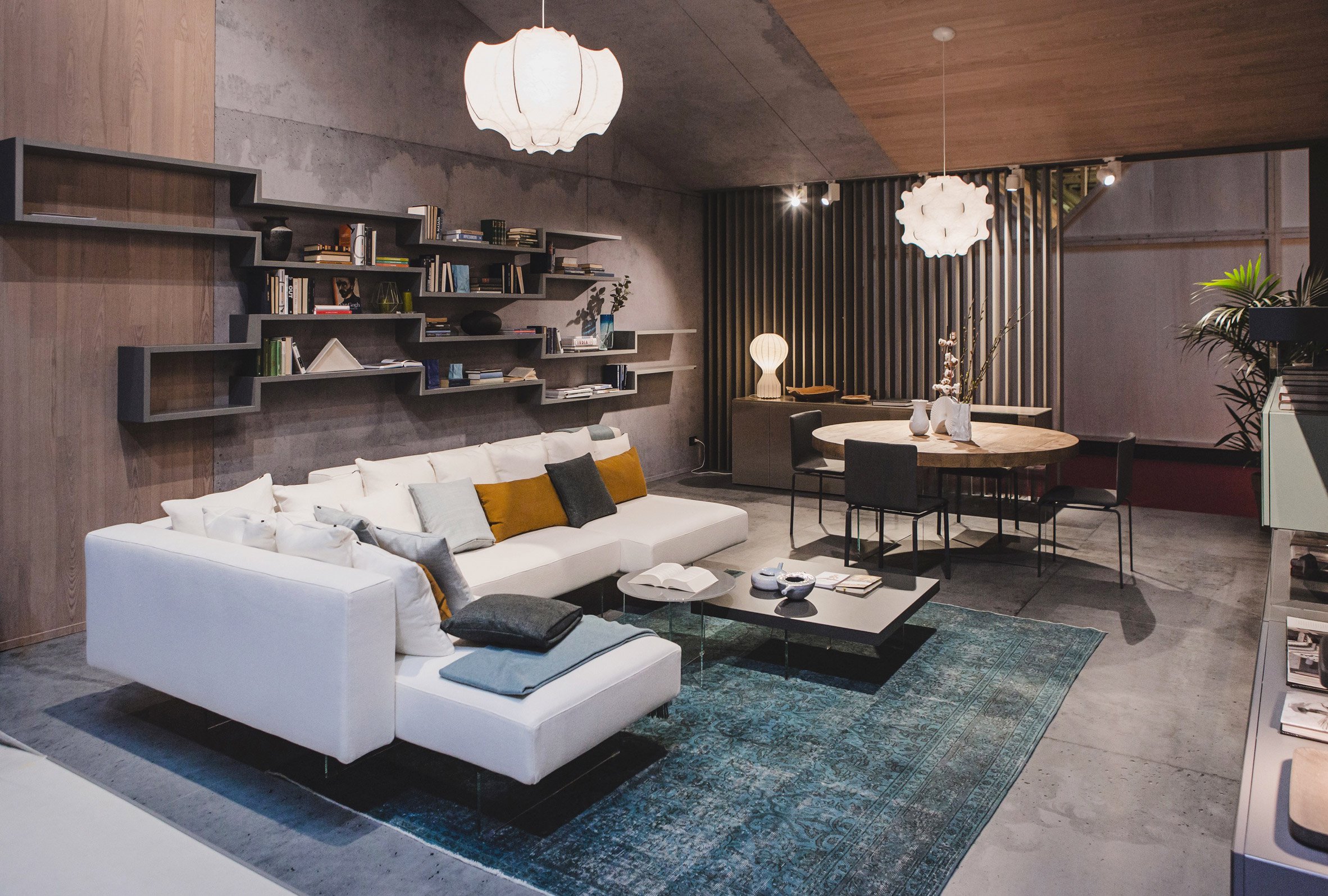 The presented rooms range from a restful loft for ballet dancer Fracci to a wood-dominated cosmopolitan apartment for Bambi, a "dream-like" bedroom for Celestino and a book-filled living and working space for Gamberale. Each room is furnished with products from Lago's collections, including the suspended Air bed in Celestino's bedroom, which is reached with a ladder, and the LagoLinea bookshelf in wall and "weightless" versions reaching to Gamberale's ceiling.