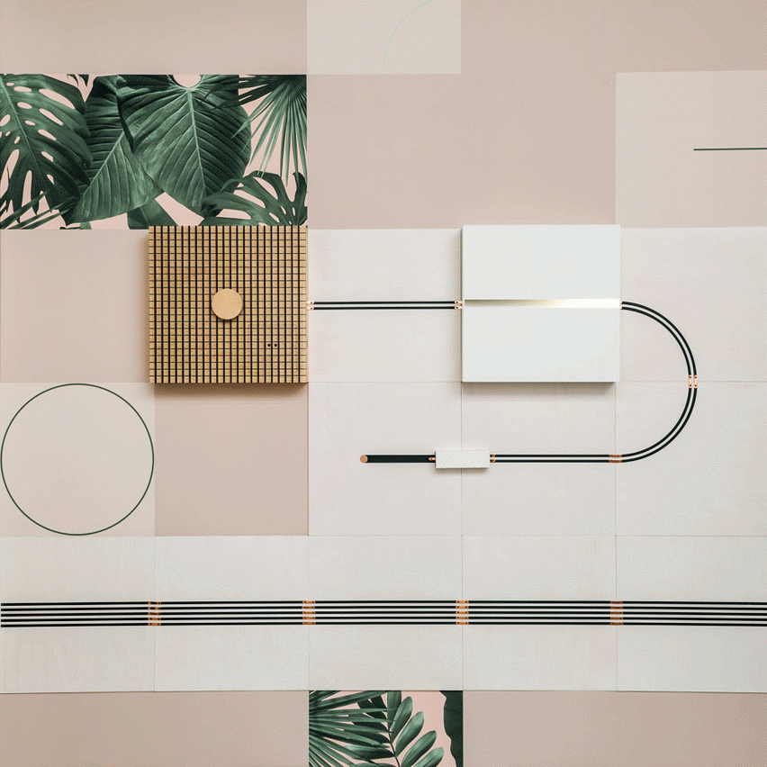 Wallpaper company Flavor Paper collaborated with furniture brand UM Project to combine sounds, lights and motions in a decorative and playful display titled Connect, which they showcased at this year's Collective Design fair in New York.