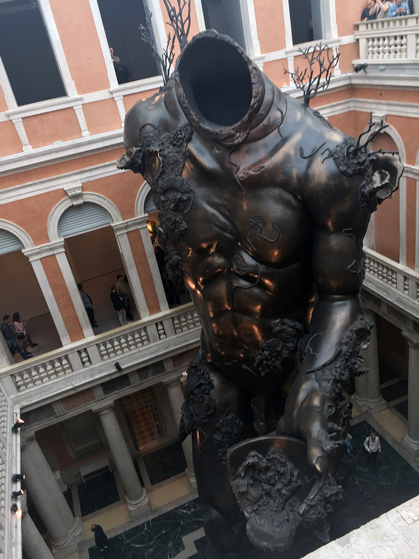 img.5 A view from the second floor of Palazzo Grassi – the headless figure is encrusted with underwater coral and subaquatic specimens. Image © designboom.
