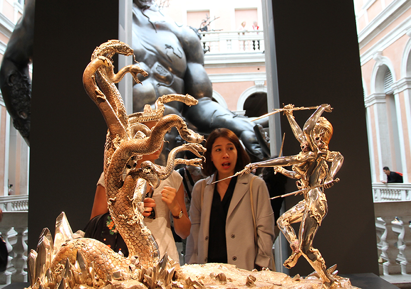 img.0 Installation view of "Demon with bowl" in the atrium of Palazzo Grassi. Image © designboom.