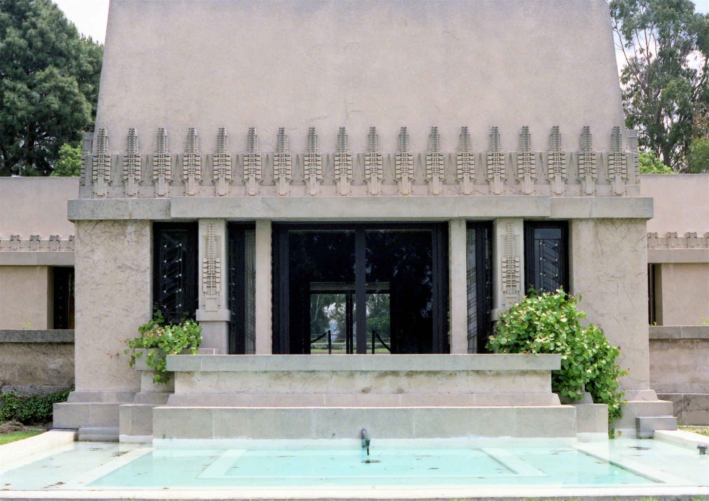 Licensed with a free reign he described as California Romanza, the architect was searching for a modern style suited to Southern California, and turned to influences from pre-Columbian Mexico. These can be seen in the home's inclined upper walls and colonnades, which bear a similarity to the shapes of temples in Palenque – a Mayan city state in southern Mexico built during the seventh century AD. This residence marks one of the earliest examples of Mayan Revival, a modern architectural style that grew in the 1920s and 1930s. Wright also used the stacked shape of a Mesoamerican pyramid to inform his Imperial Hotel in Tokyo and is known as a key leader of the movement.