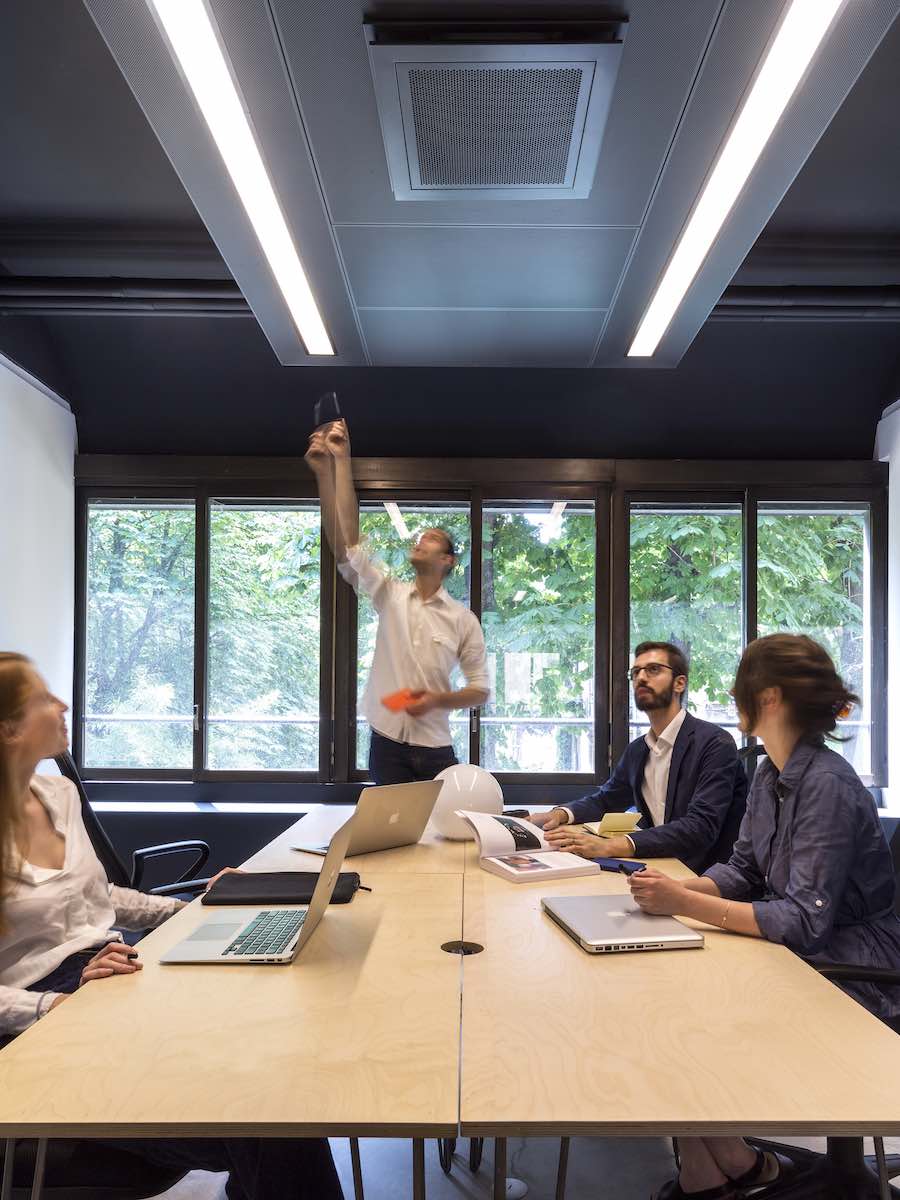 INTERNET OF THINGS – Fondazione Agnelli is a digitally-augmented building able to adapt in real time to its users’ needs. Hundreds of sensors monitor different sets of data, including the location of the building’s occupants, temperature, CO2 concentration and the availability of meeting rooms. By interacting with the Building Management System (BMS) via a smartphone App, visitors and employees can customize their workspace experience and even call an end to the current ‘thermostat wars’ in the office.