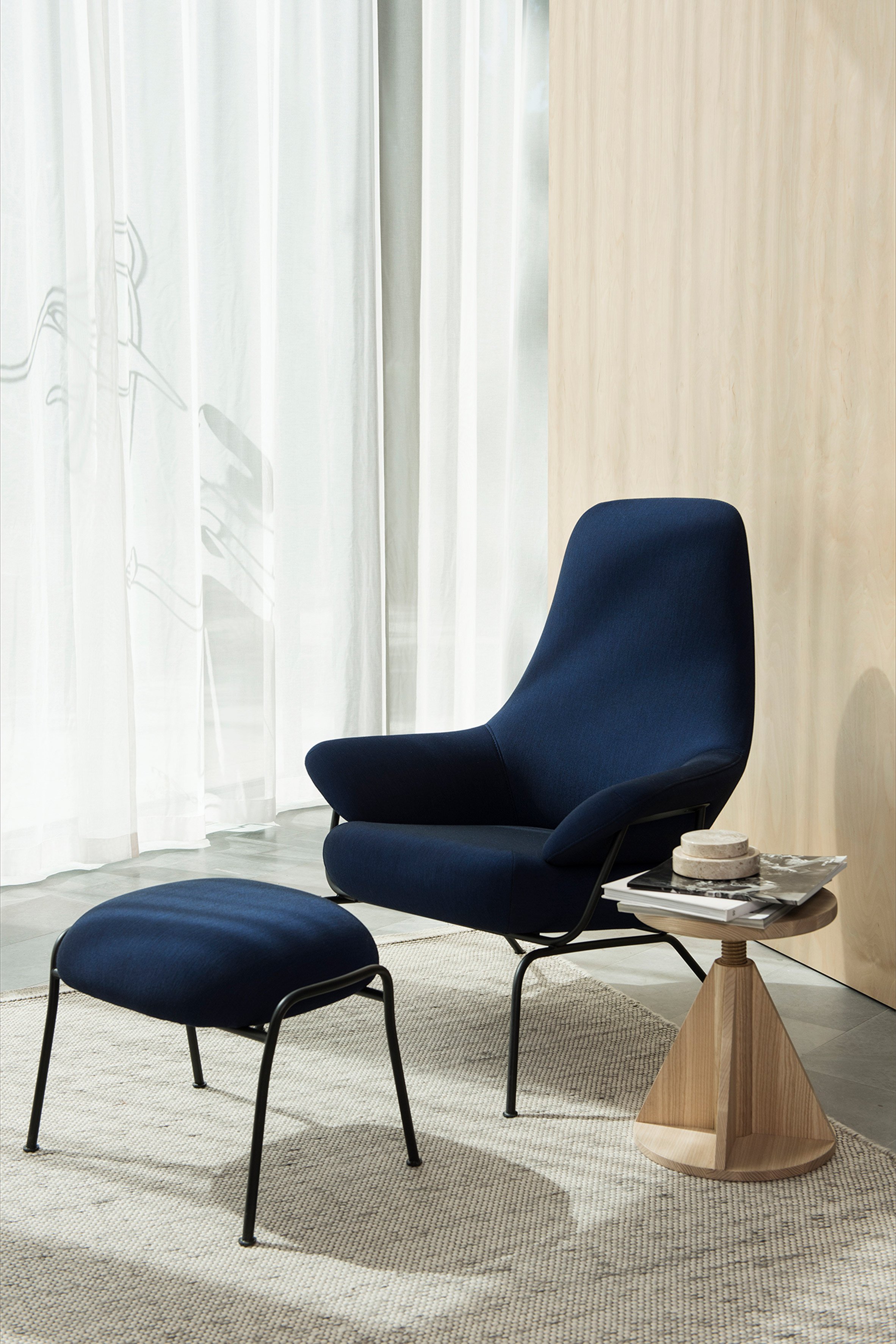 Luca Nichetto's Hai Chair, which was originally launched by One Nordic in 2013, has been updated with refined lines and two new fabrics. The re-engineered chair is now available in a green upholstery called ink and a deep blue shade that it describes as a "chlorophyll-thick" peacock.