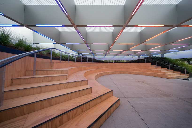 img.3 A two-metre-deep gridded, machine-like canopy forms a protective translucent roof. Image © John Gollings.