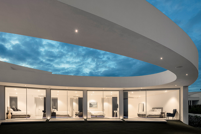 The "Casa Elíptica", designed by Mártins Atelier and photographed here by Fernando Guerra, evokes the fluidity and lightness of the coastal area while embracing the natural, curvilinear shapes of the landscape.