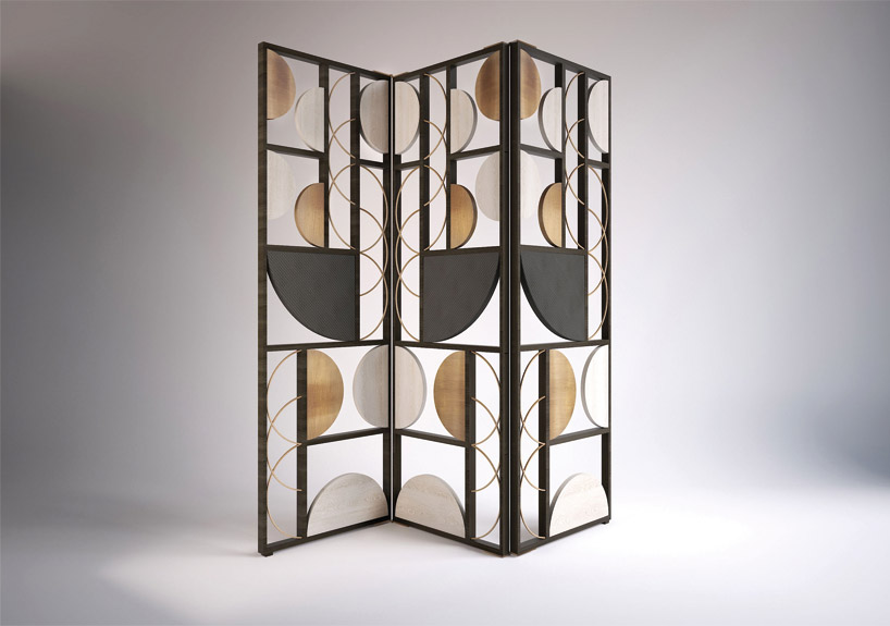 ‘Home’ is said to be a ‘timeless collection’ thanks to its union of knowledgeable, artisanal craftsmanship and use of advanced machinery. Four highlight pieces truly resonate these characteristics. these include: the quilted and leather- or refined velvet-adorning ‘Victoria’ armchair; the golden, burnished metal based ‘Gramercy’ poufs, which are available in three different sizes and covers its traditional padded tops with pastel-shade suede leather; the sculpted and light ‘stuart’ dining table that is composed of a rich material combination of black marble with rose-colored veinings and brushed brass; and the mosiac ‘empire’ séparé of precious stone, marble, wood and metal that unfolds to define new living spaces.