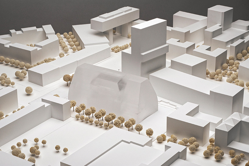 3XN’s fourth place entry was praised by the jury for its strong aesthetic effect. The venue is clad with a façade that appears as a cloth draped on top of the structure. A dramatic staircase leads inside the building, adding to a sense of theater and intrigue. Finally, the slender form of Staab Architekten’s design refers to the district’s industrial history. Rather than occupying the entire plot, the proposed scheme offers generous amounts of open space. All competition entries, including models and plans, are on display at Munich’s White Box Gallery until November 26, 2017.