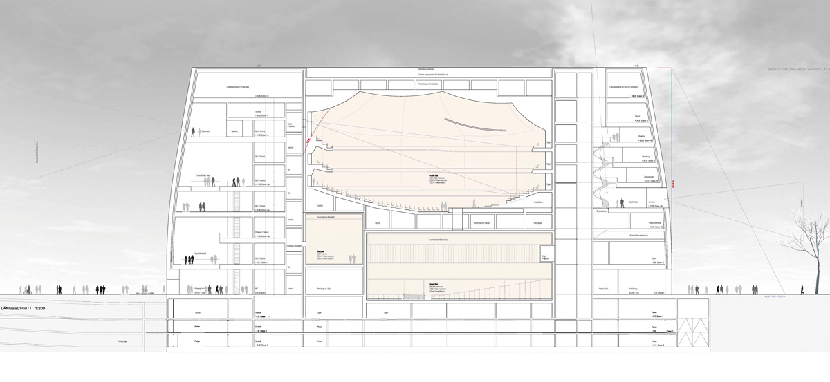 img.2 Section illustrating the configuration of the concert halls. Image courtesy of Cukrowicz Nachbaur Architekten.