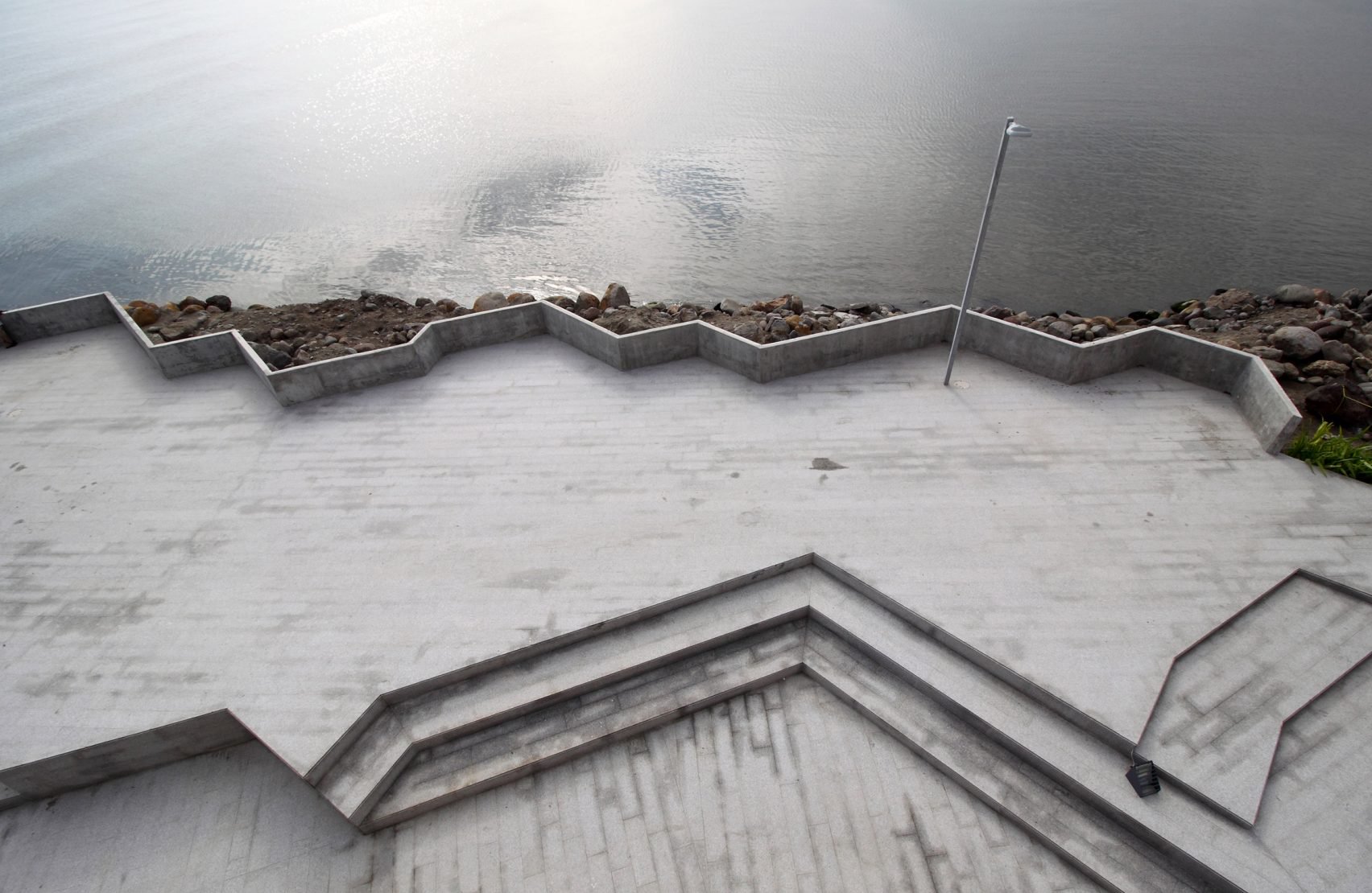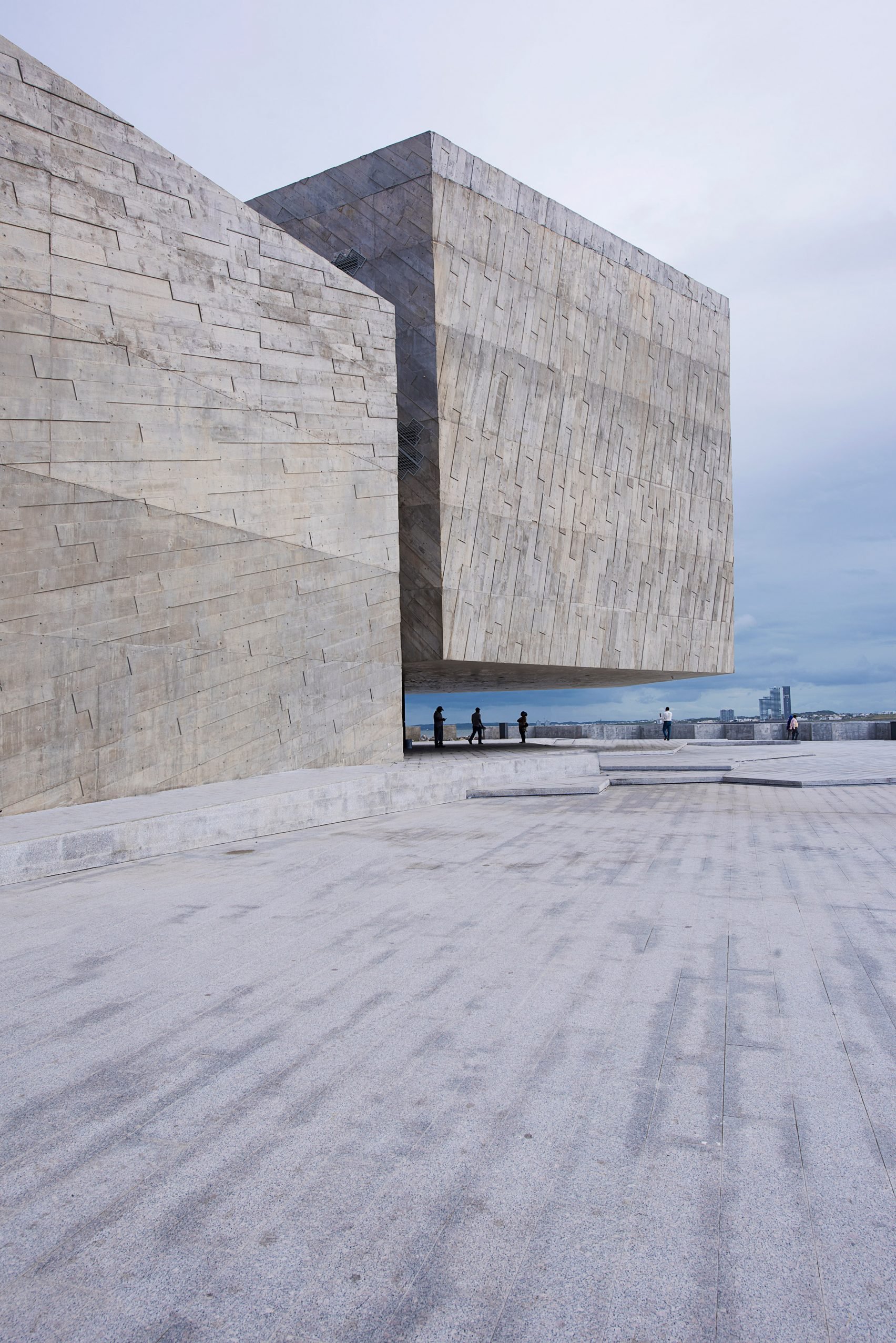 The building's geometric shape – comprising different-sized blocks and angular walls – is intended to reference the rocky edge of this sea wall.