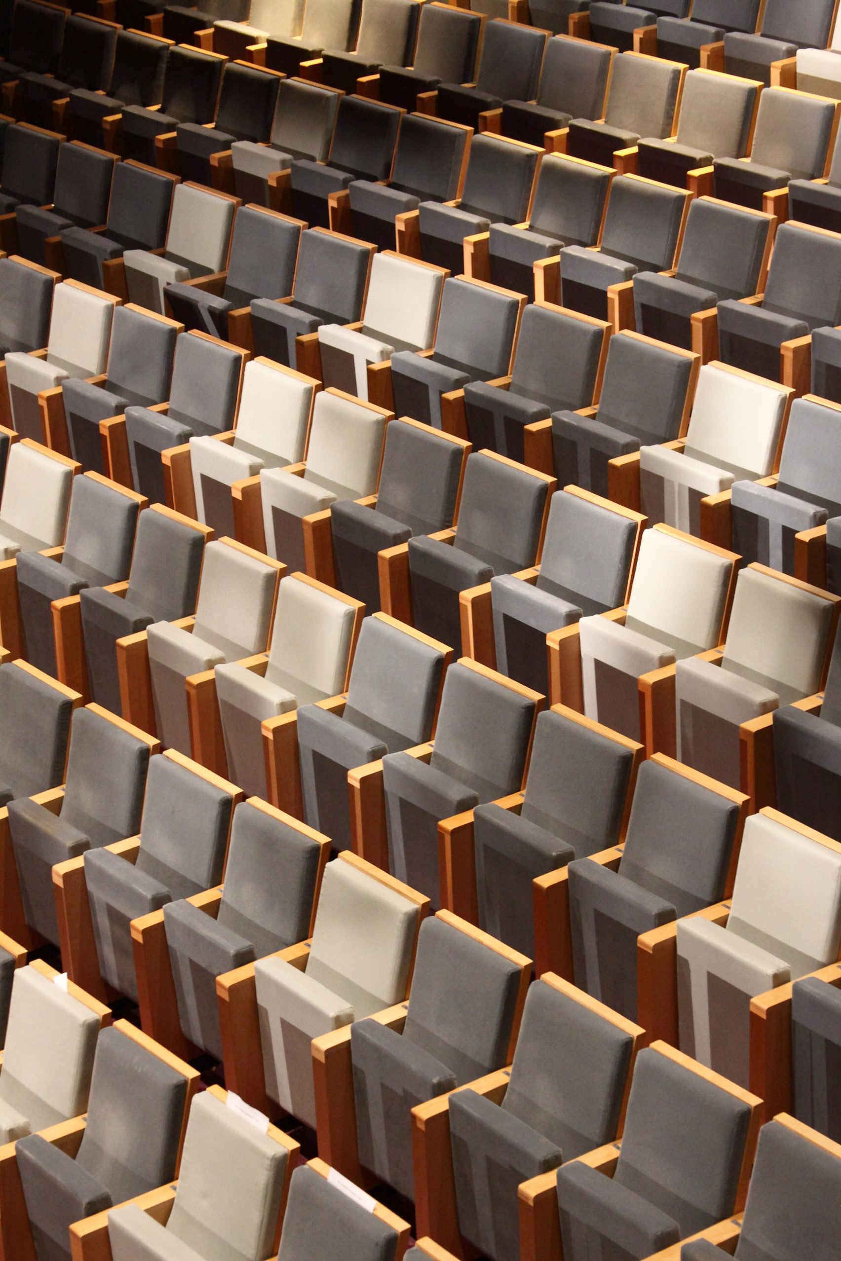 At the centre, the tallest and largest block houses the 966-seat orchestra hall, which mainly hosts classical, traditional and pop-music concerts, but also accommodates dance and theatre performances, and cinema screenings. Simple finishes – including exposed concrete walls and wooden balconies that provide extra seating – mirror the building's exterior aesthetic. A smaller hall accommodates 150 spectators for more intimate cinema, dance and theatre showings.