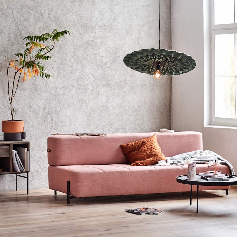 The FOLD pendant light by Scottish designer Kyla McCallum debuts following several years of research and experimentation at her Foldability studio in London. The designer developed a shade structured by repeating folds that brings Japanese origami to mind, making it a unique hybrid of hand-craftsmanship and fibre innovation.