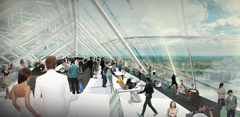 Billed as "the most innovative windmill in the world", the Dutch Windwheel is intended as a landmark attraction for Rotterdam's waterside. Architecture studio DoepelStrijkers designed the structure and is promoting it with the help of partners Meyster's and BLOC. The designers imagine the 174-metre-high structure as being framed by two rings – a rotating outer ring made up of 40 rollercoaster cabins, and a static inner ring containing flats, a hotel and a restaurant.
