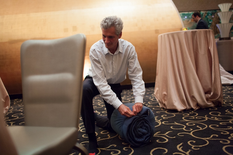 Every day we queue at the bank, at the post office, outside the cinema. Tons of wasted time. With the performance “No Time To Waste”, the Argentine artist Daniel González uses this temporal space for such actions as sleeping or meditating, turning waiting time into personal time. Focusing on a specific moment of everyday life González employs performance actions to investigate the boundaries of preconceived social structures, whether they be public or private.